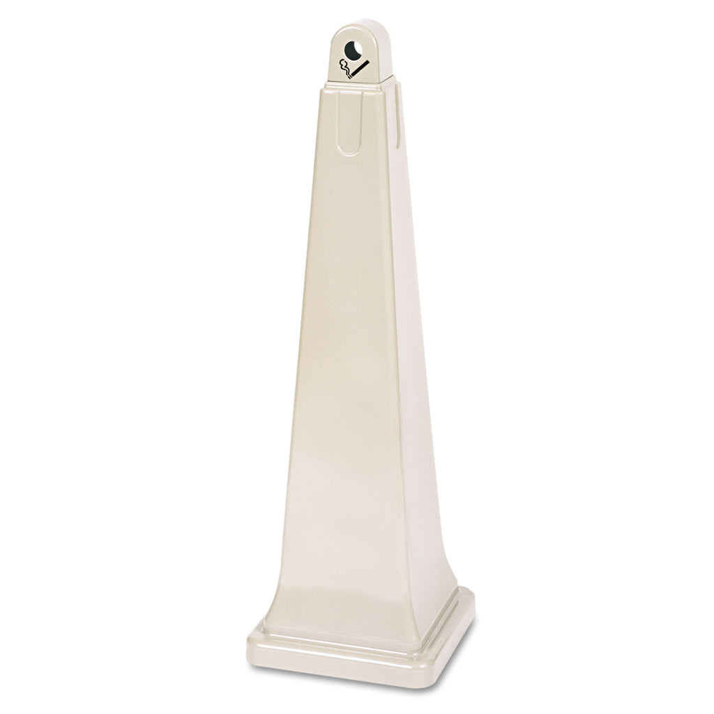 Here's a sleek, efficient way to control smoker waste. Restricted opening hides butts, controls unwanted deposits, reduces oxygen flow. Weather-resistant design cleans easily, needs no sand. Molded plastic exterior, galvanized steel interior canister, stainless steel base.