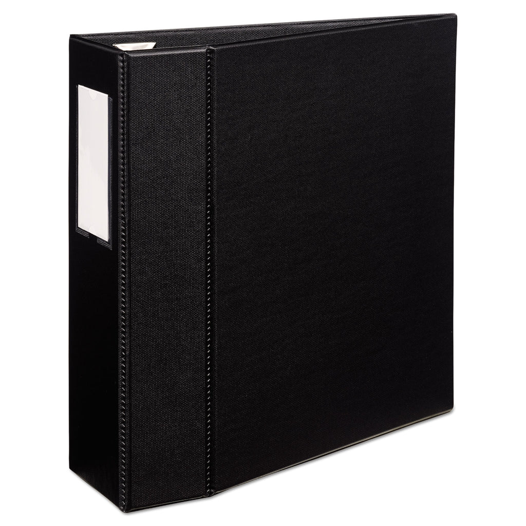 Heavy-duty binders for extended use. Tear-resistant DuraHinge® design is stronger and lasts longer. DuraEdge feature makes the sides and top more pliable, providing greater split resistance. Deep texture film offers a smoother finish and features a linen pattern for a high-quality look and feel. Four clear, interior pockets provide extra storage space. Wider front and back panels fully cover standard dividers and sheet protectors. One Touch slant rings open with ease, keep pages secure and have a higher page capacity compared to the same size round rings. Pages lie flat with back-mounted rings for a clean spine. Binders are made out of heavy-duty, non-stick poly material and won't lift ink or toner off printed pages.