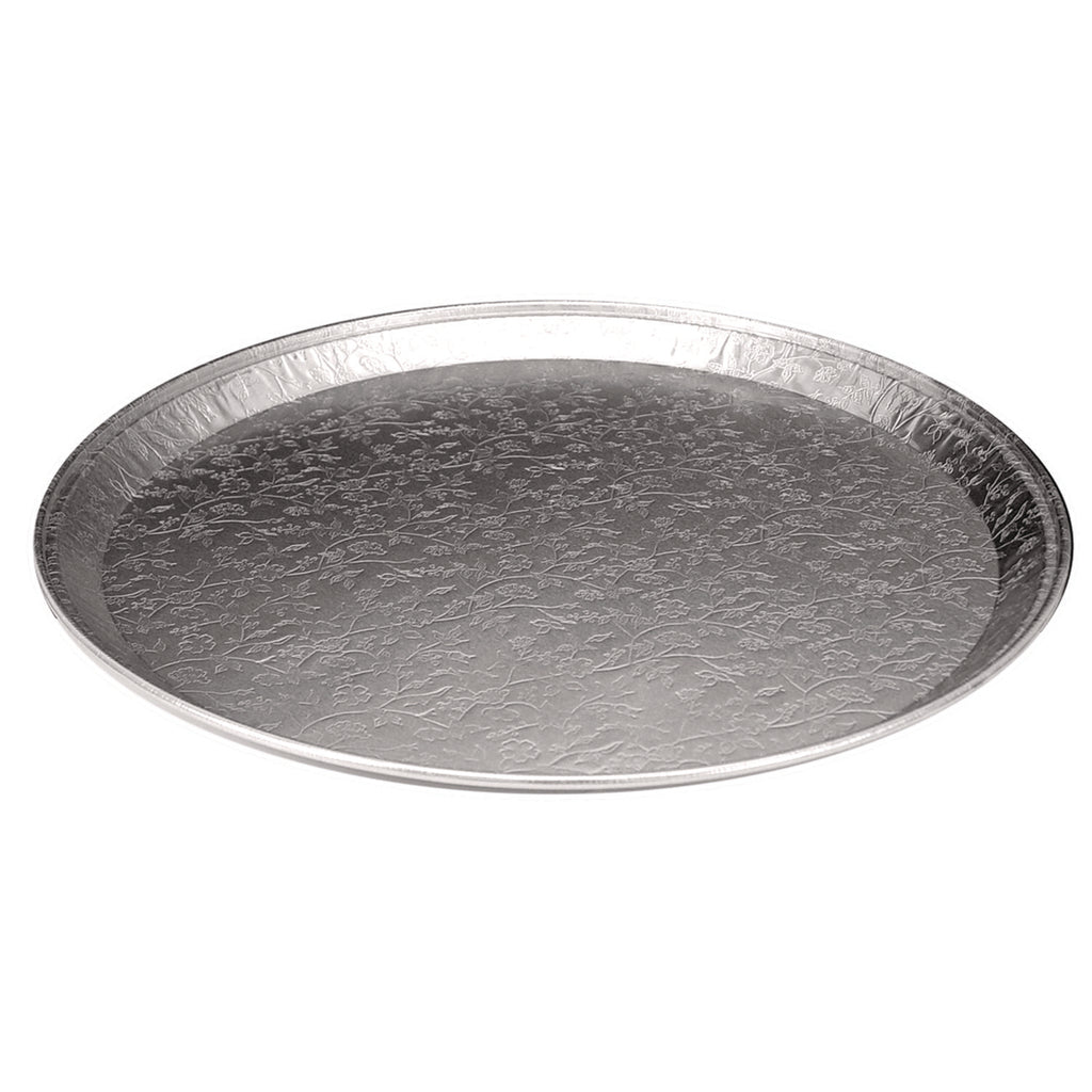 Aluminum embossed serving trays provide uncompromising foil quality along with an optimal display of goods. Handle freezer to oven temperatures. Used for hot or cold foods.