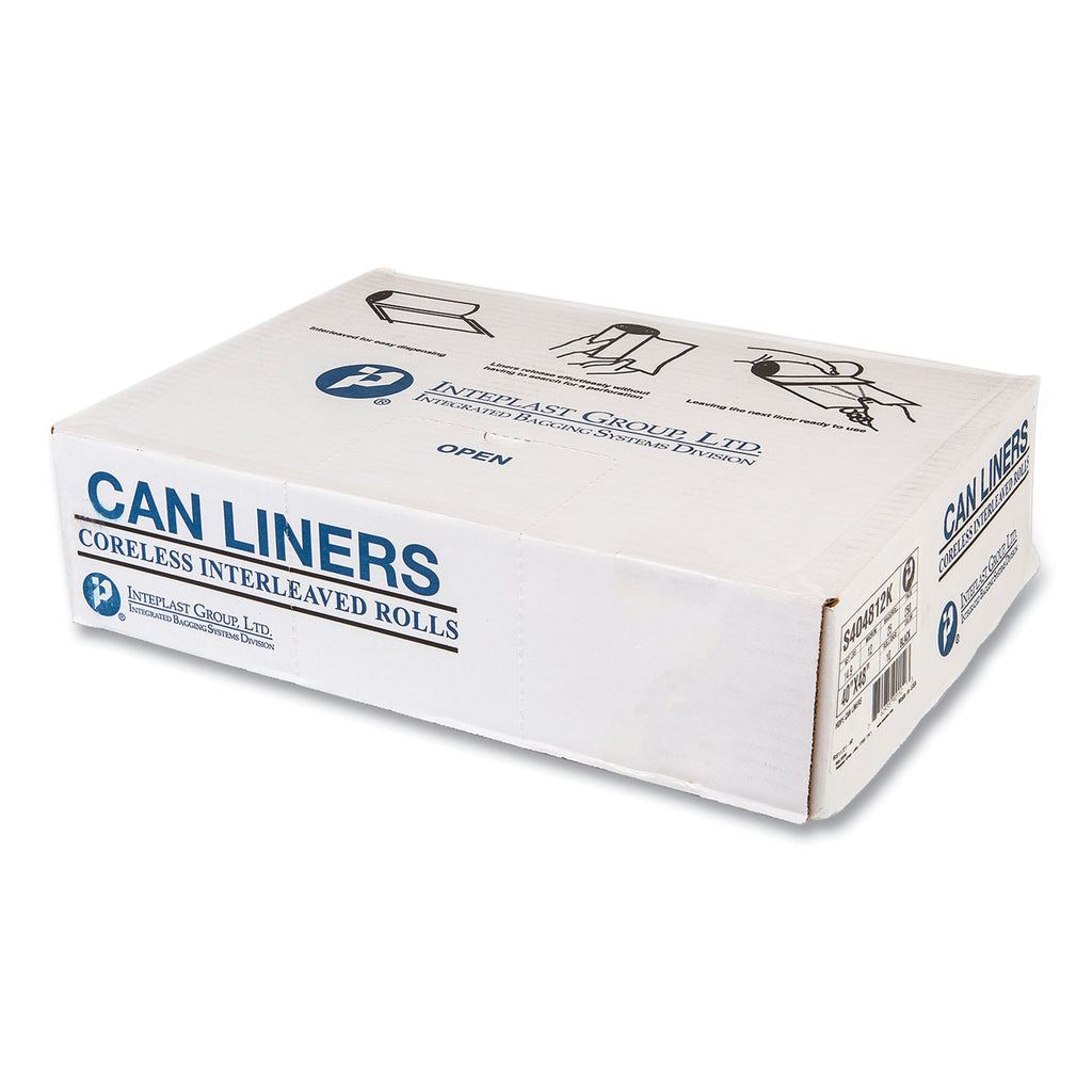 Inteplast Group High-Density Commercial Can Liners, 45 gal, 12 mic, 40" x 48", Black, Interleaved Roll, 25 Bags/Roll, 10 Rolls/Carton