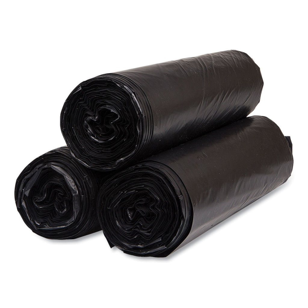 Inteplast Group High-Density Commercial Can Liners, 45 gal, 22 mic, 40" x 48", Black, Interleaved Roll, 25 Bags/Roll, 6 Rolls/Carton
