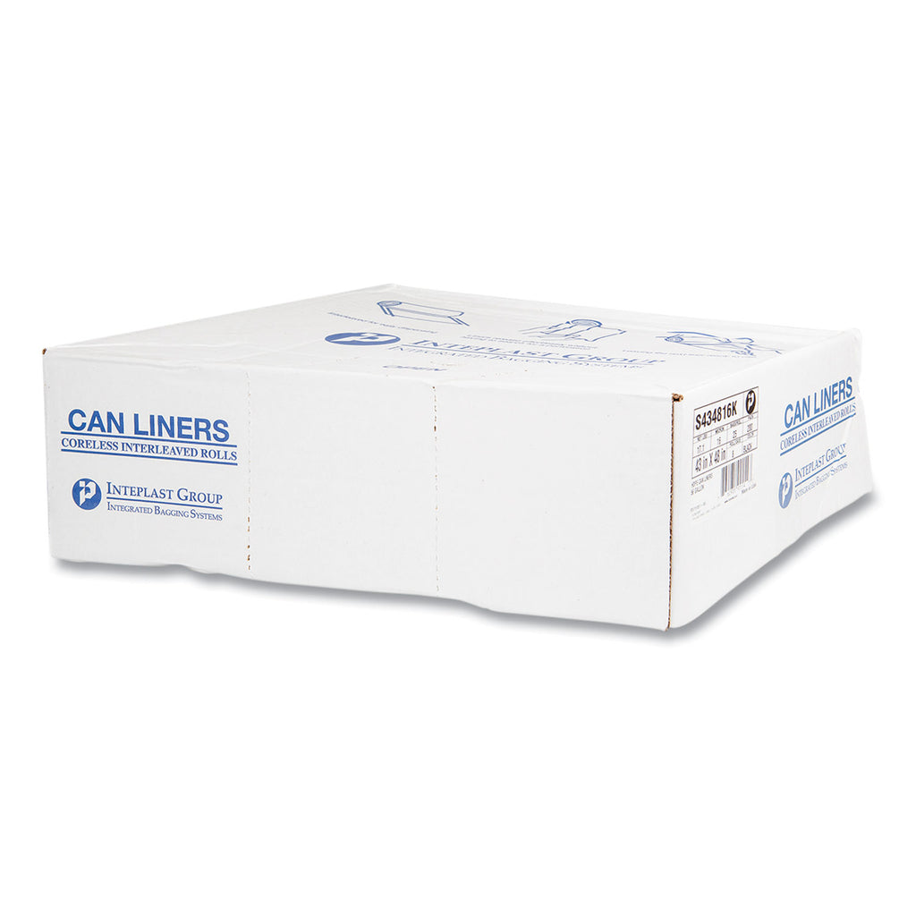 Inteplast Group High-Density Commercial Can Liners, 56 gal, 16 mic, 43" x 48", Black, Interleaved Roll, 25 Bags/Roll, 8 Rolls/Carton