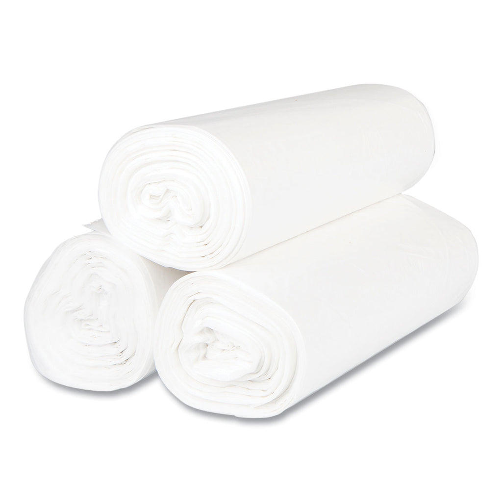 HDPE liners are an excellent choice for refuse-collection applications where there are no sharp edges. High-quality, virgin resin provides a higher-than-average tensile strength with an outstanding dart-impact rating. Strong, star-sealed bottoms ensure weight remains distributed evenly. Innovative "clamshell" box features E-Z liner-identification labeling.