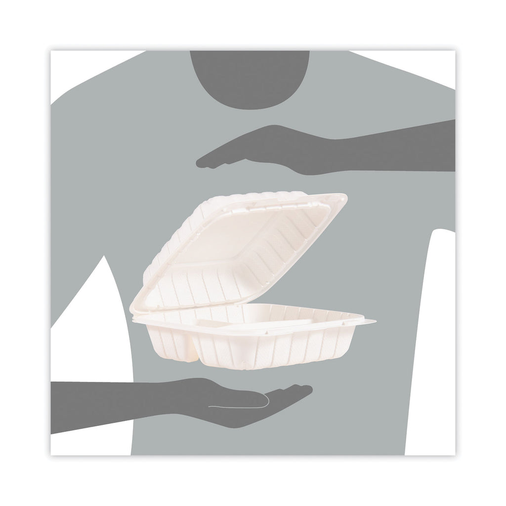 Easily reheat leftovers, the containers are microwavable. Reduce the chance of sauces and liquids soaking through, containers are non-absorbent, cut-resistant and surface-resistant. Versatile containers are ideal for a variety of food applications such as breakfast, lunch, dinner, and desserts. Chamfered corners provide extra strength at the corners of the container. Textured sidewall ribbing reinforces container durability. Sturdy construction is able to hold full portions of food without buckling. Dual bar locks provide audible snap and confirm secure closing every time.