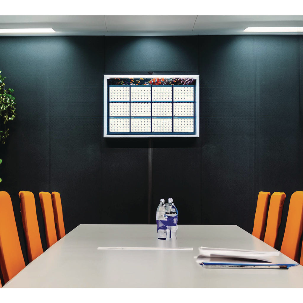 Brighten up your workspace with a sea-life scene. Reversible, vertical or horizontal format. Laminated write-on, wipe-off surface. Includes one black, water-soluble marker and hanging tabs. Calendar is printed on 100% recycled paper.