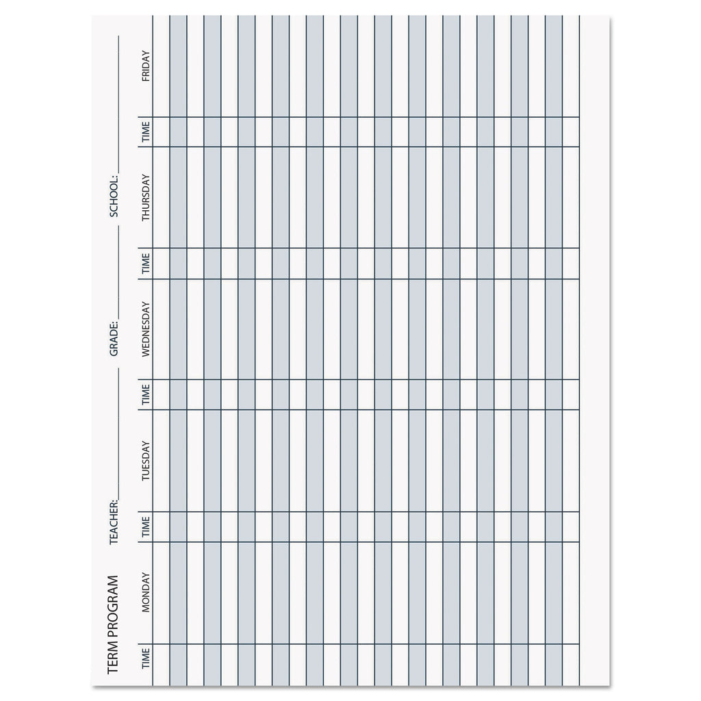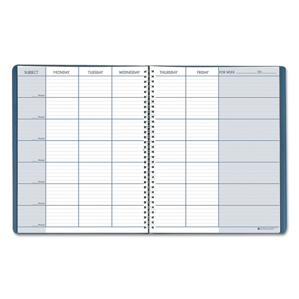 Contains 45 undated weekly spreads, each divided into seven periods, with space for notes. Includes seating chart, term program, test and attendance records. Embossed simulated-leather cover. Made entirely of recycled materials.