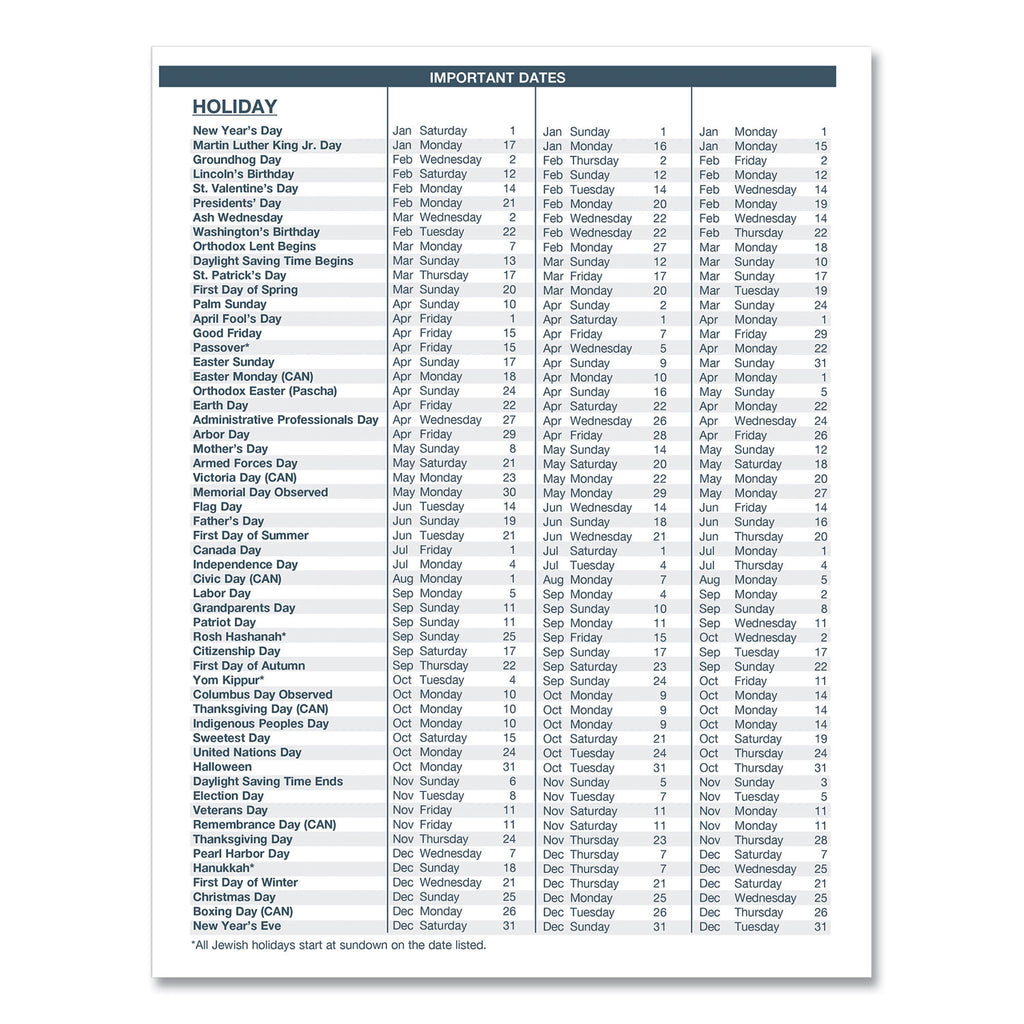 - Lightly ruled 2 1/8" x 1 7/8" daily blocks keep notations neat.