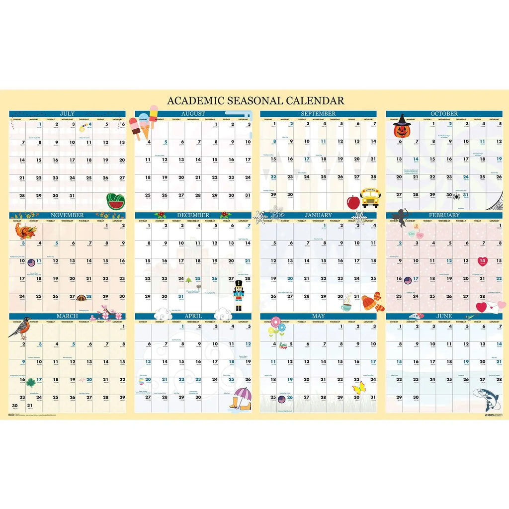 Each month in academic format, July to June, features a different lively design depicting the holidays and seasons of that month. Reversible vertical and horizontal formats allow you to choose the format that fits your office space. Easily erases with a damp cloth for changing plans. Black water-soluble marker and hang tabs included. Not for use with permanent markers.