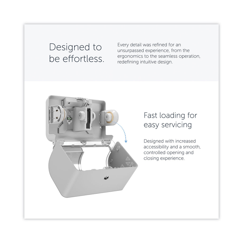 This dispensing system is an industry-leading innovation, changing the face of the restroom. Featuring first-of-a-kind versatility, the ICON™ dispenser effortlessly enhances the look of the restroom with an exclusive line of designer faceplates to help reimagine the restroom. The double roll dispenser provides reliable balance of efficiency, performance and value. It holds two full high capacity standard toilet paper rolls. The dispenser adds style to hygiene with an option of six interchangeable designer faceplates. By using coreless or paper core high capacity toilet paper rolls you'll have up to 47% less waste, up to 15% more paper per case versus standard toilet paper rolls. Refilling is easy for your maintenance staff with a choice of keyed or keyless lock for easy maintenance access.