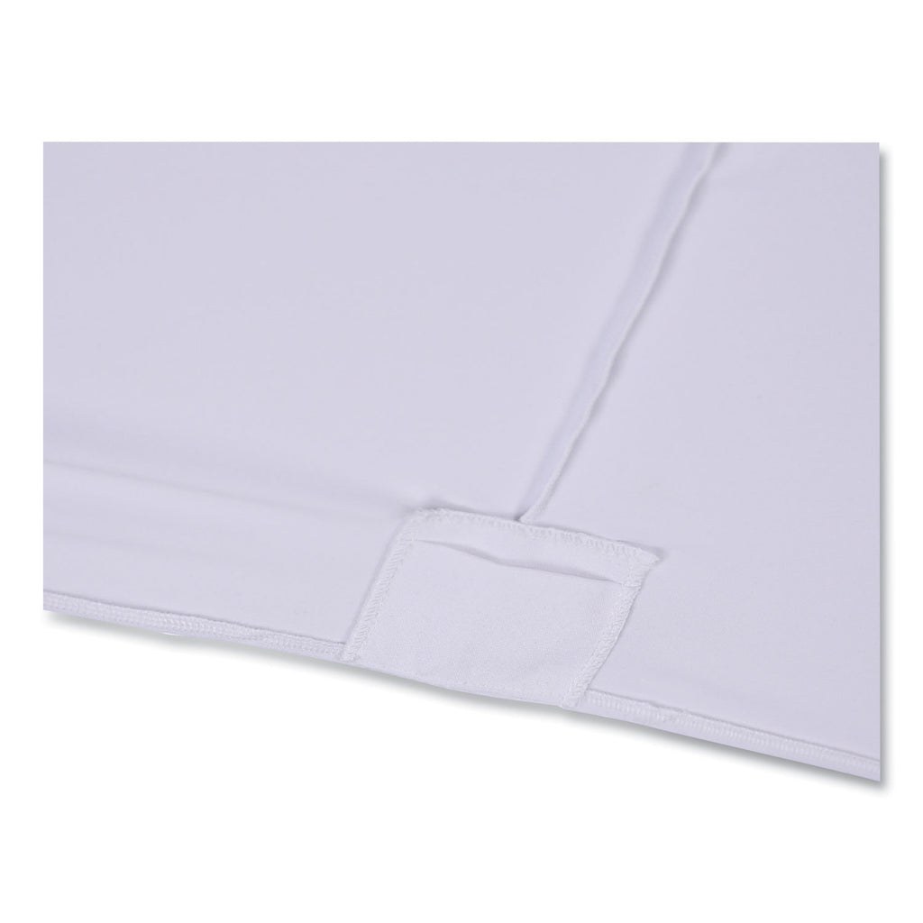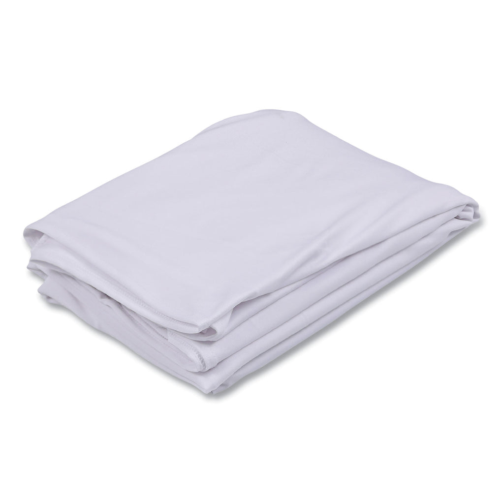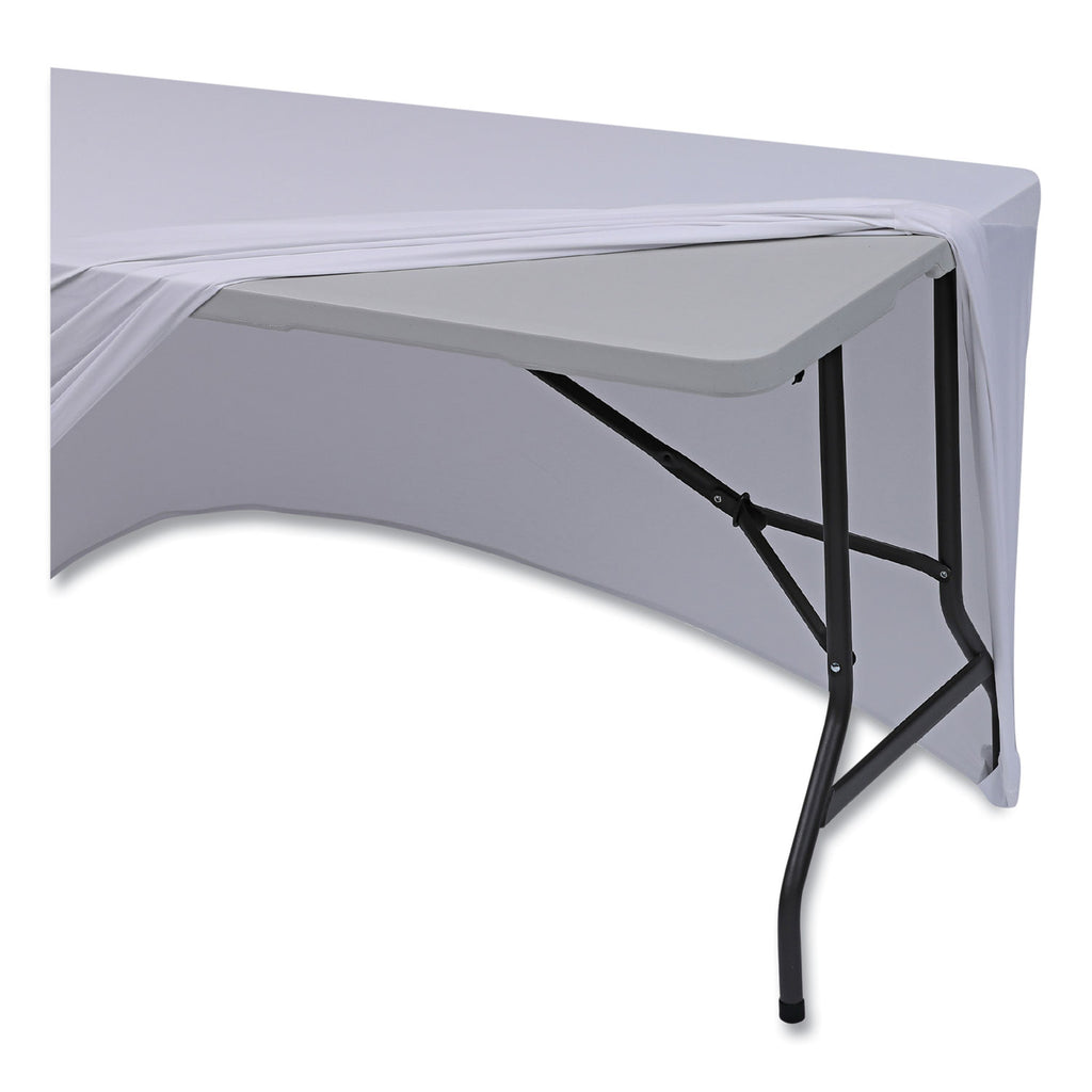 Easily transform resin- or laminate-wood-top tables into elegant presentation platforms in seconds. Tablecloth fits snug over the table for a tailored fit, and reinforced leg-pockets keep the tablecloth secured to the table while preventing tears and rips. Machine washable and iron safe.