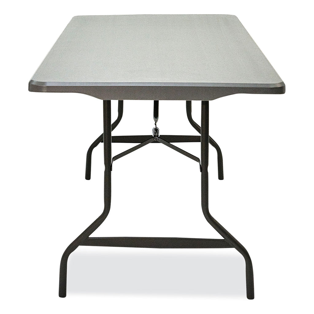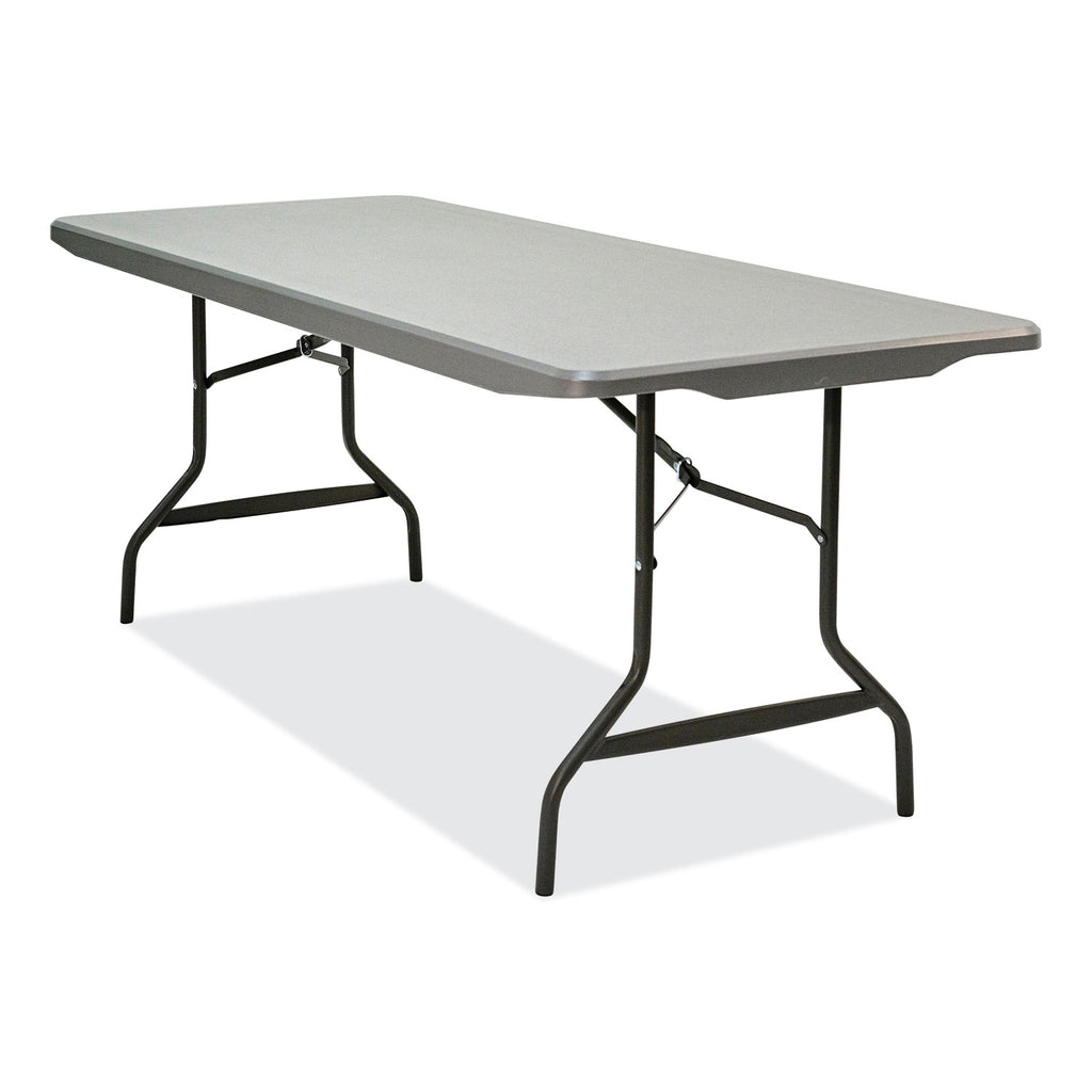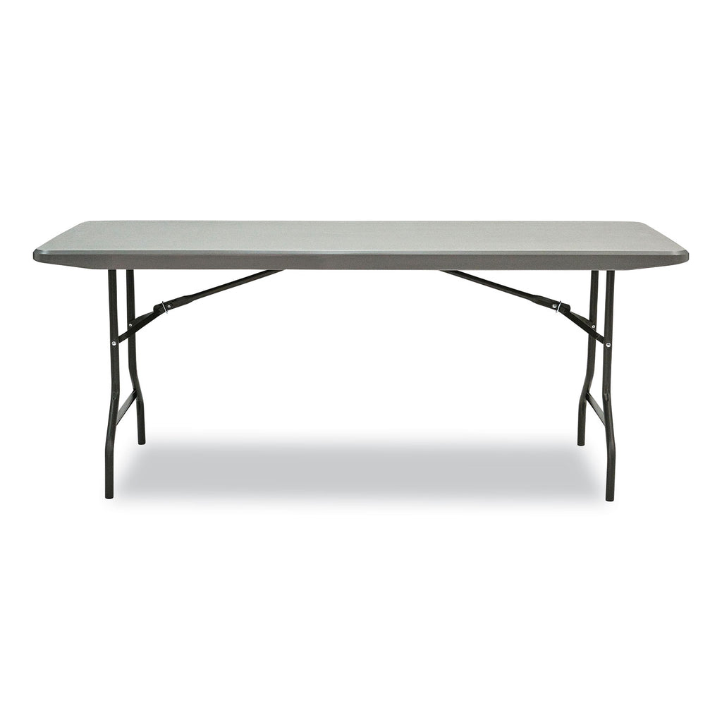 Wonderfully sturdy and attractive while easy to transport, set up and take down, these lightweight folding tables can handle nearly any temporary demand. Dent- and scratch-resistant as well as surprisingly easy to clean, the blow-molded high-density polyethylene top features a square edge, so tablecloths can hang straight. All steel base and legs with protective rubber glides.