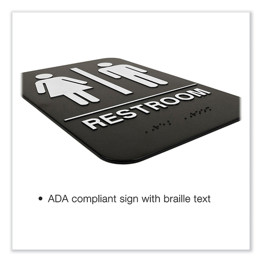 Excello Global Products® Indoor/Outdoor Restroom with Braille Text, 6" x 9", Black Face, White Graphics, 3/Pack