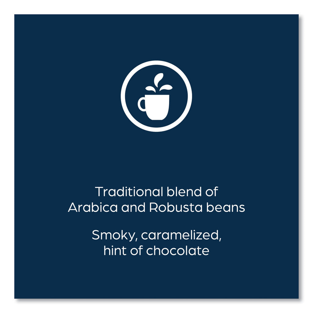This coffee features a bold flavor with perfectly balanced smoky and caramelized flavor notes. Our dark roasting process enhances the body while finishing the taste experience with a hint of chocolate flavor notes. This traditional blend of Arabica and Robusta coffees, mainly from South-East Asia and South America, delivers a uniquely Italian coffee aroma. Our brewing process, where nothing touches the ingredients other than hot water, ensures your drink does not taste like previous brews. Compatible with FLAVIA® single-serve brewers. For single-serve sustainability, innovative pouches are 100 percent recyclable through Terracycle.