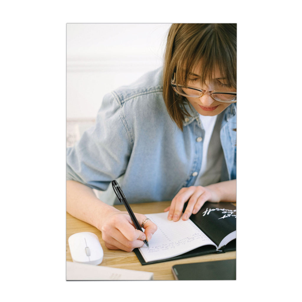 Innovative hybrid ink combines the quick-drying properties of a ballpoint with the smoothness and vibrancy of a gel. uni Super Ink™ technology protects writing from water, fading and fraud. Ergonomic, attractive barrel features a comfortable, soft, textured body, Ideal for both right- and left-handed writers. Acid-free for archival-quality results.