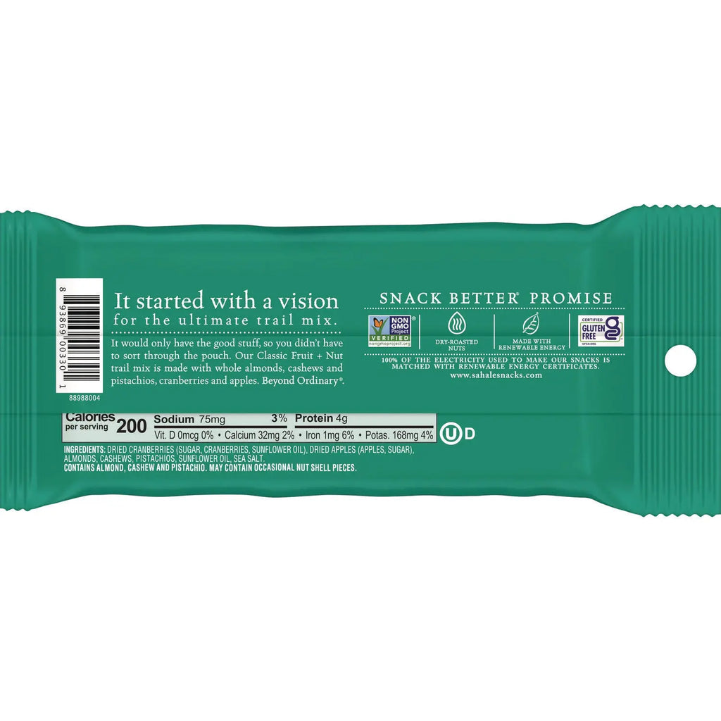 With its perfect balance of crunchy and chewy textures, this sweet and salty trail mix pairs dry-roasted almonds, cashews, and pistachios with sweetened apples and tart cranberries to form a delicious snack option.