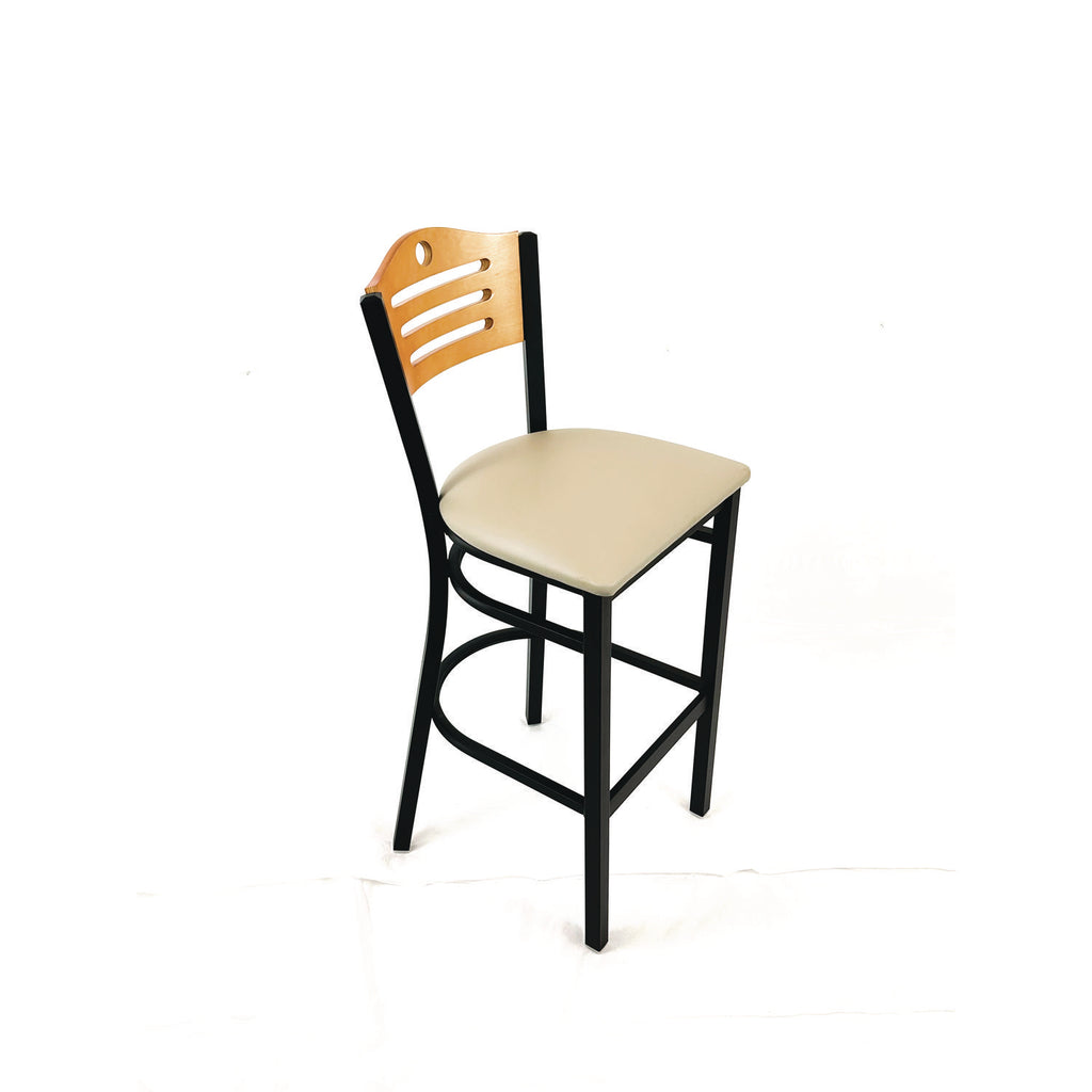 The metal frame barstool with vinyl seat is a stylish and practical choice for indoor use. The durable metal frame provides a sturdy foundation, while the vinyl seat offers a comfortable and easy-to-clean surface. Modern design and sleek lines make it a versatile option. Whether used as a dining chair or occasional seating, this metal frame barstool is a reliable and attractive addition to any setting.