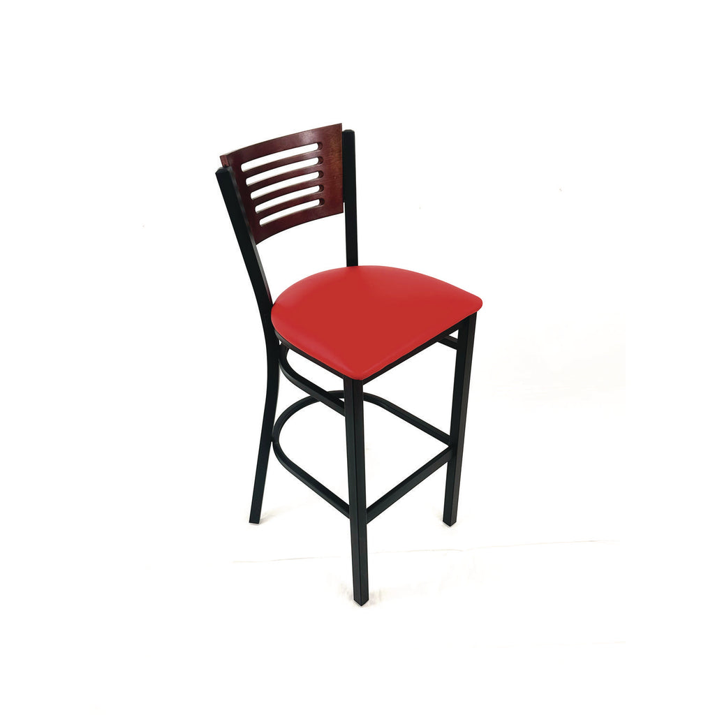The metal frame barstool with vinyl seat is a stylish and practical choice for indoor use. The durable metal frame provides a sturdy foundation, while the vinyl seat offers a comfortable and easy-to-clean surface. Modern design and sleek lines make it a versatile option. Whether used as a dining chair or occasional seating, this metal frame barstool is a reliable and attractive addition to any setting.