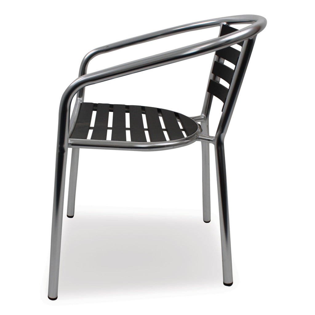 Sleek, modern design adds an element of sophistication to your outdoor space without compromising on either comfort or durability. Tubular steel frame delivers the reliable support required without leaving your table space feeling cluttered. Slick, synthetic-slat seat and back pads deliver a more comfortable feel while keeping overall maintenance low-key.