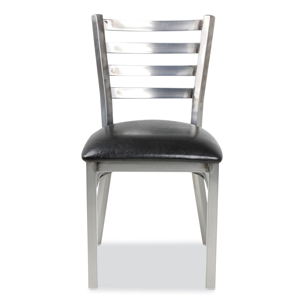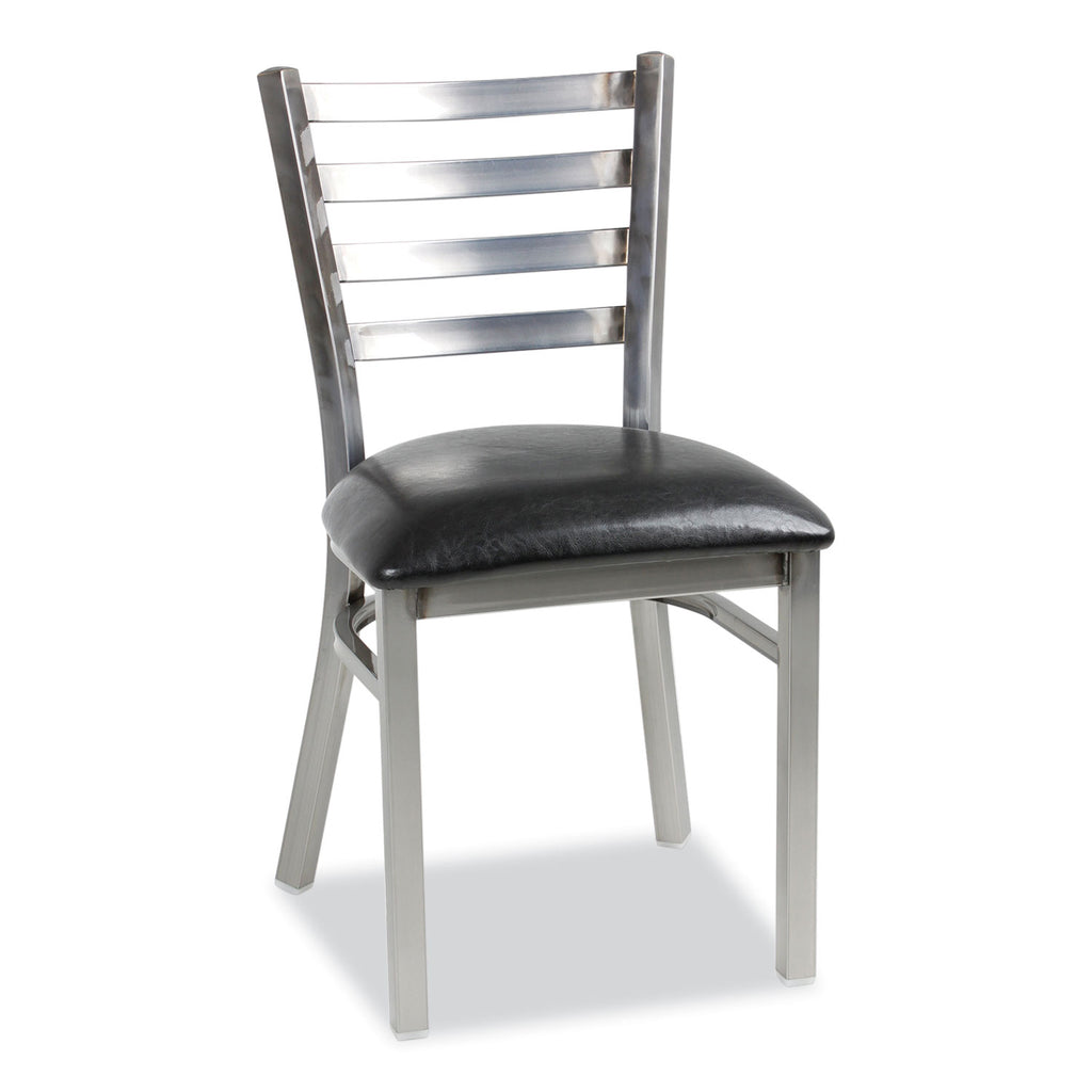 A sleek, modern design providing maximum comfort and excellent durability, this steel-frame dining chair with vinyl seat is a stylish, very practical choice for both commercial and residential environments. Durable steel frame provides a sturdy foundation, while the soft and supportive vinyl seat delivers both comfort and easy-clean convenience.