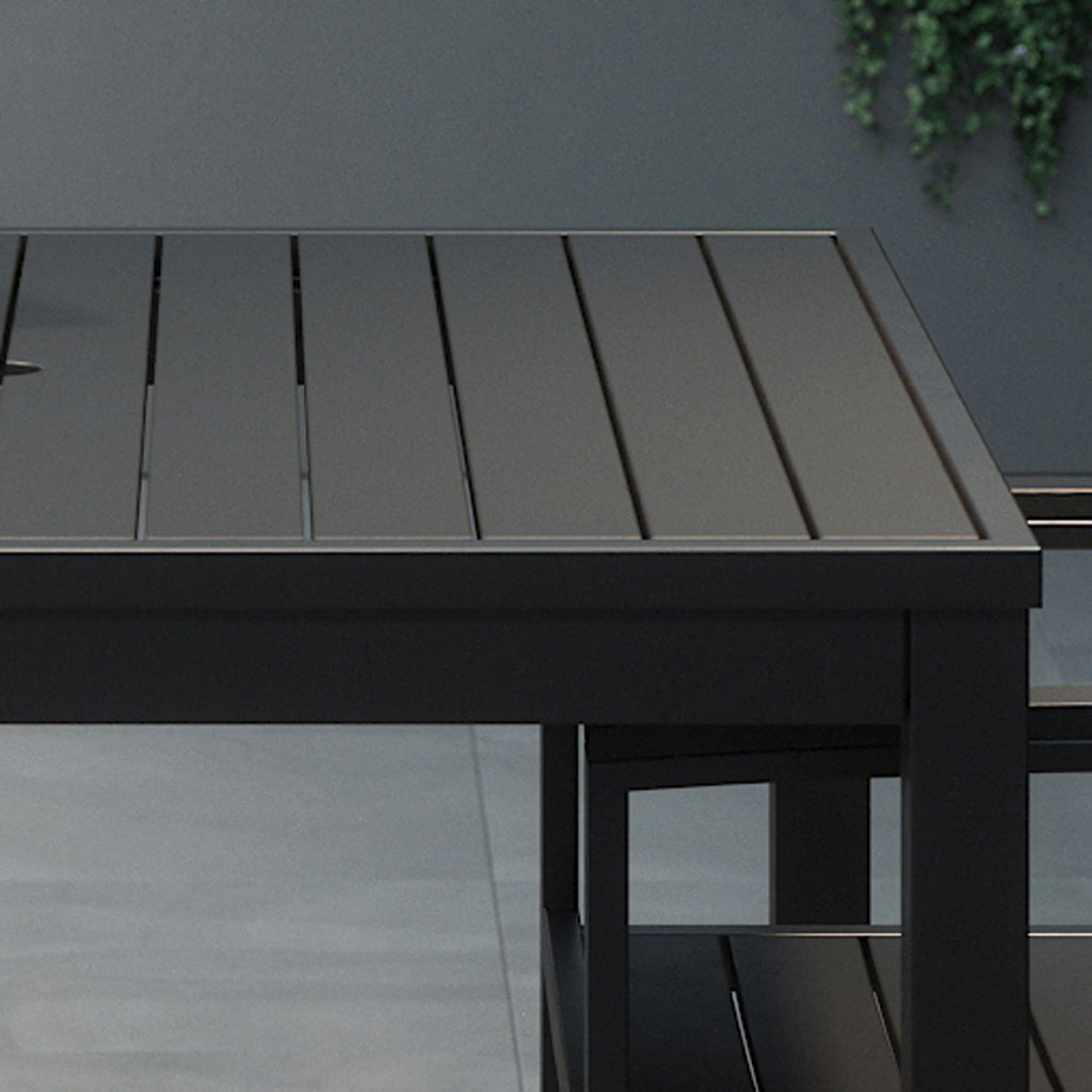 | Package Includes | Black 30" Square Polymer Table Top; 41" Tall Black Aluminum Square Leg Base; (2) Black Powder-Coated Polymer 29.5" Seat Height Barstools |