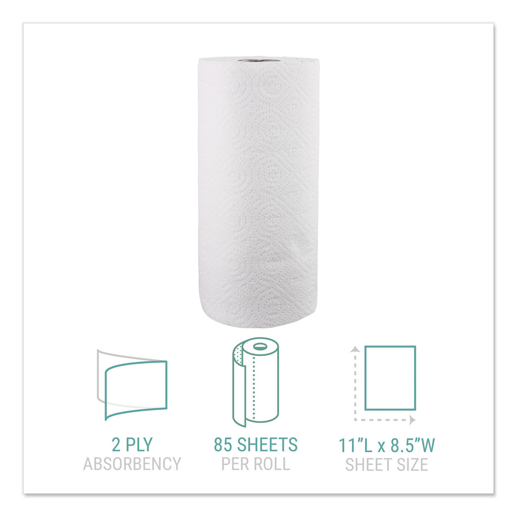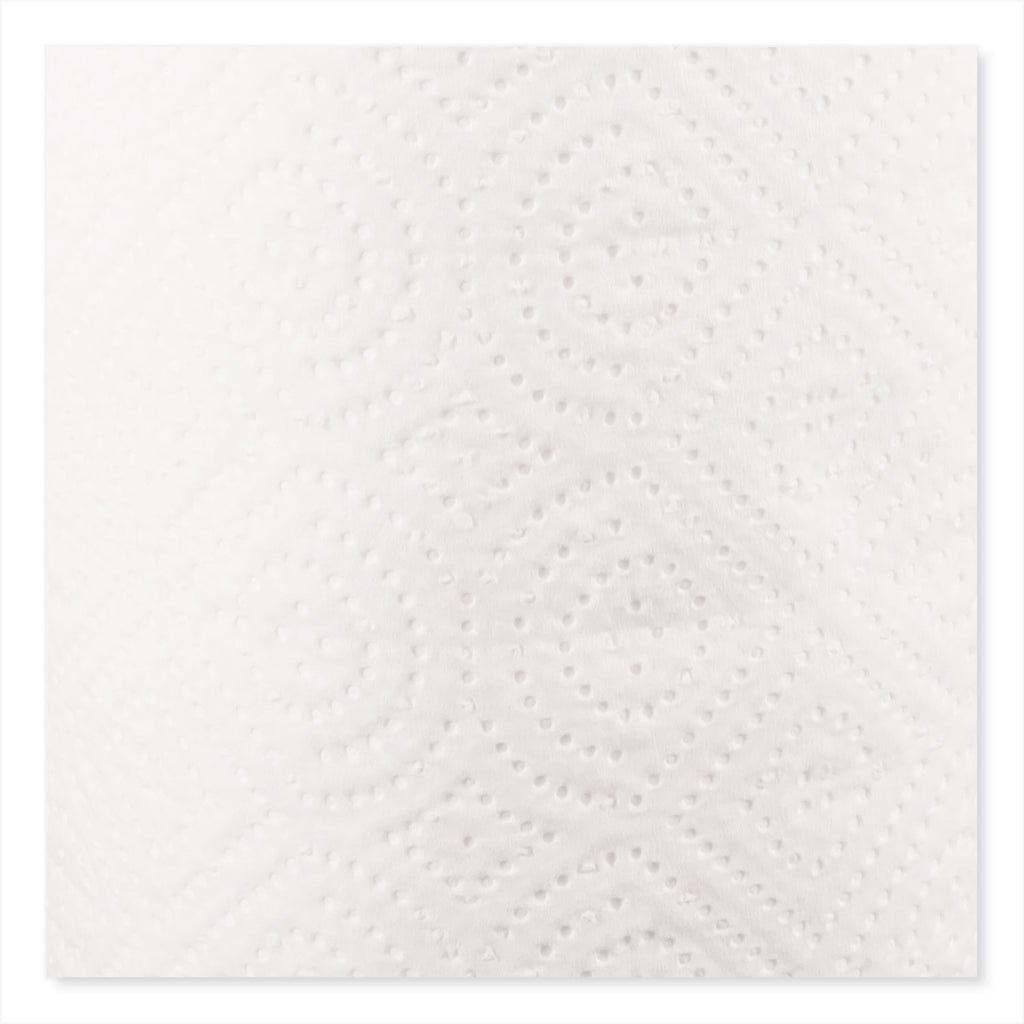 Durable, two-ply, white, unscented paper kitchen roll towels. Engineered with premium embossing and enhanced absorbency paper towels to get the most out of each roll.