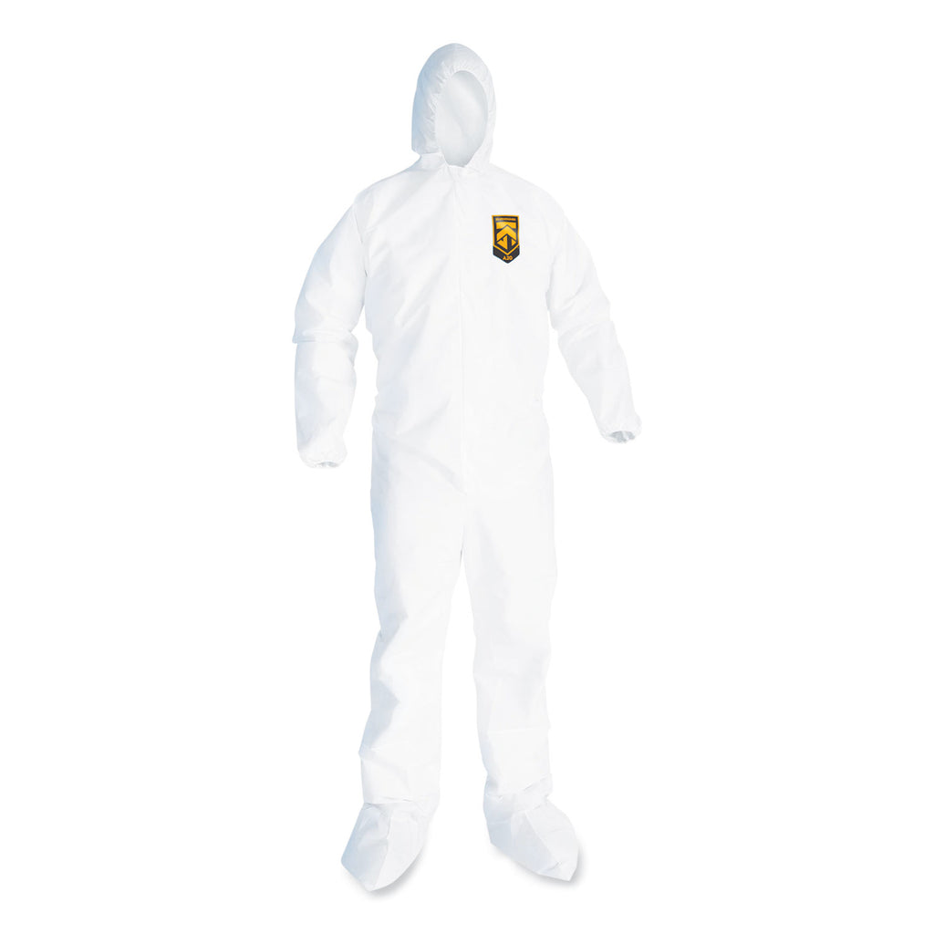 KleenGuard™ A20 Breathable Particle Protection Coveralls, Elastic Back, Hood and Boots, Large, White, 24/Carton