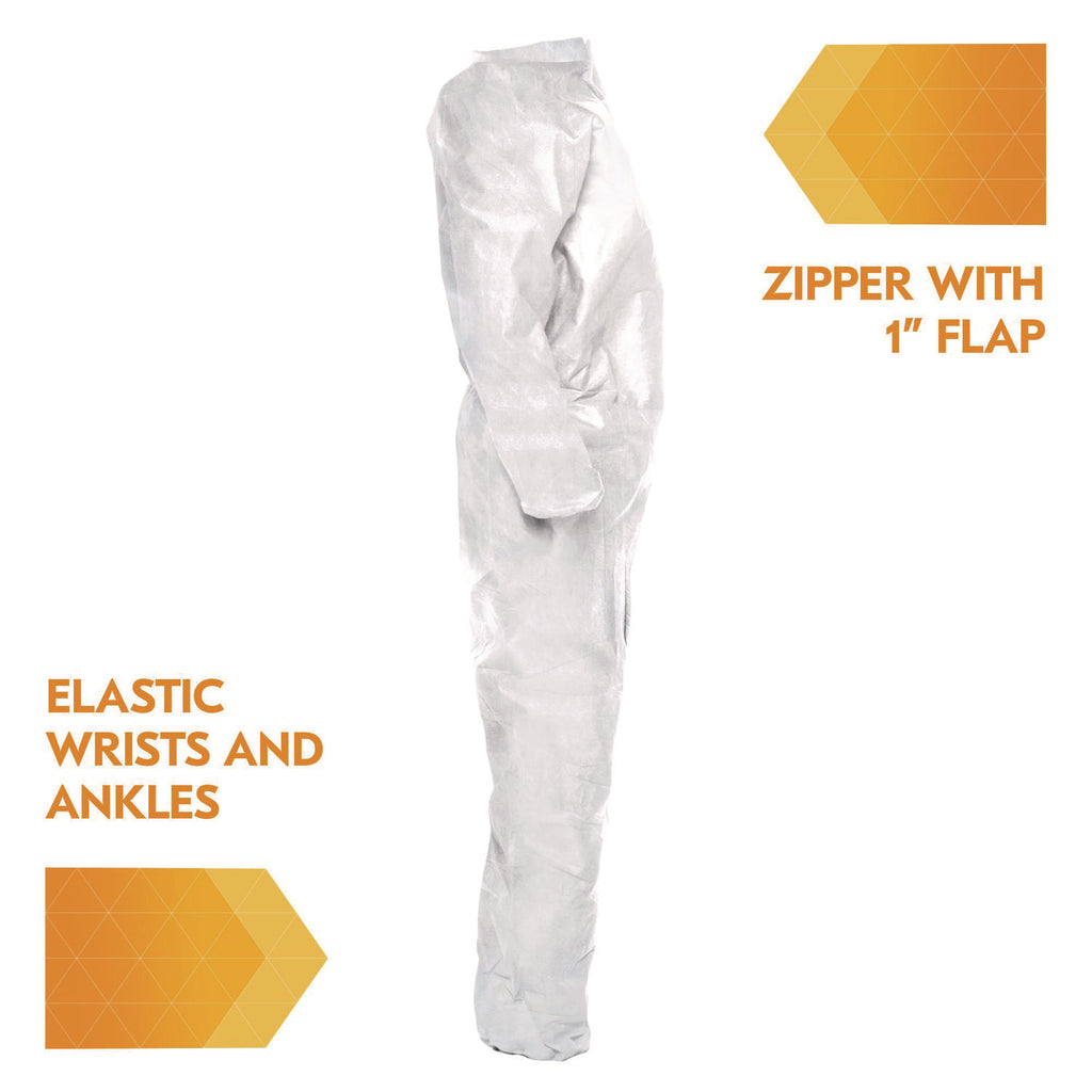 KleenGuard Personal Protective Equipment (PPE) enables rather than inhibits allowing for maximum productivity and safety for you and your employees. KleenGuard A20 Breathable Particle Protection Coveralls are designed to move with you and your employees while protecting against hazardous and non-hazardous dust. These protective garments offer superior particle holdout coupled with unmatched comfort attributes. The A20 fabric is comprised of five layers of stacked barrier protection (SMMMS) against hazardous particles. Features to provide more protection include the seamless front (for primary exposure area) and 1-inch zipper flap. They feature Reflex design, which offers excellent fit and freedom of movement. The seamless front provides more protection to the primary exposure area. They are a popular choice for dusty environments such as laboratories and remediation, as well as pesticide applications and as decontamination modesty garments. Making the right Personal Protection choice is difficult. Perform with distinction with KleenGuard Personal Protective Equipment (PPE).