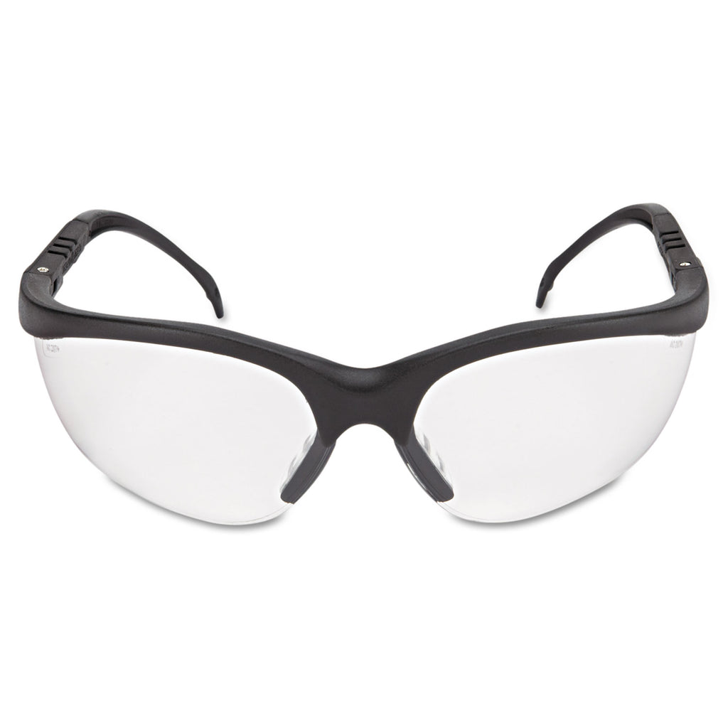 Attractive, modern design gives you a stylish, light-weight option that you'll want to wear all day long. Strong polycarbonate lenses provide excellent protection from flying debris. Adjustable temples and gel nose piece enhance wearing comfort.