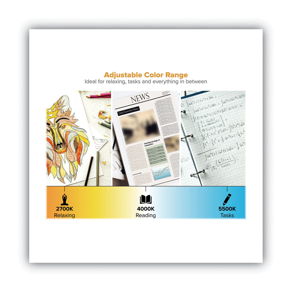 - Three adjustable color-temperature modes for relaxing, reading and close-work tasks.