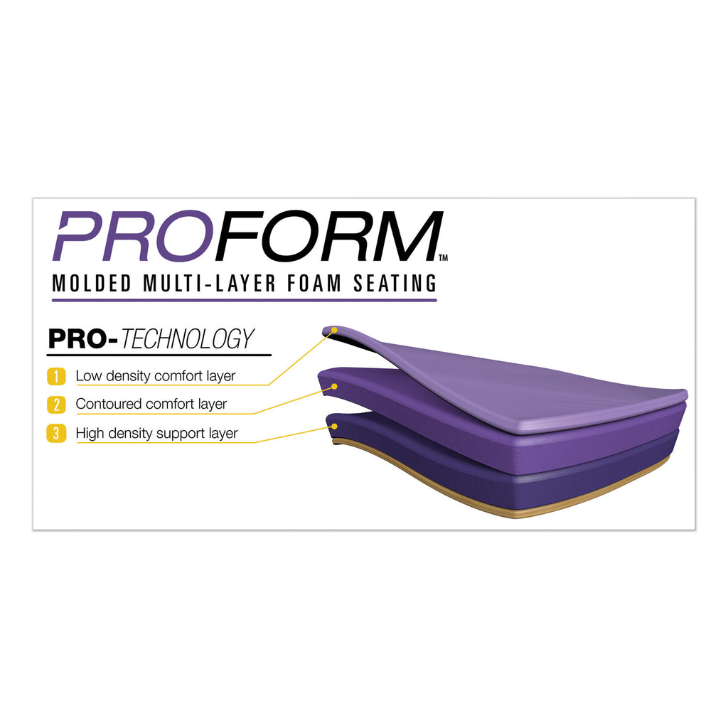 - Contoured Proform molded foam seating technology with built-in lumbar support for superior comfort.