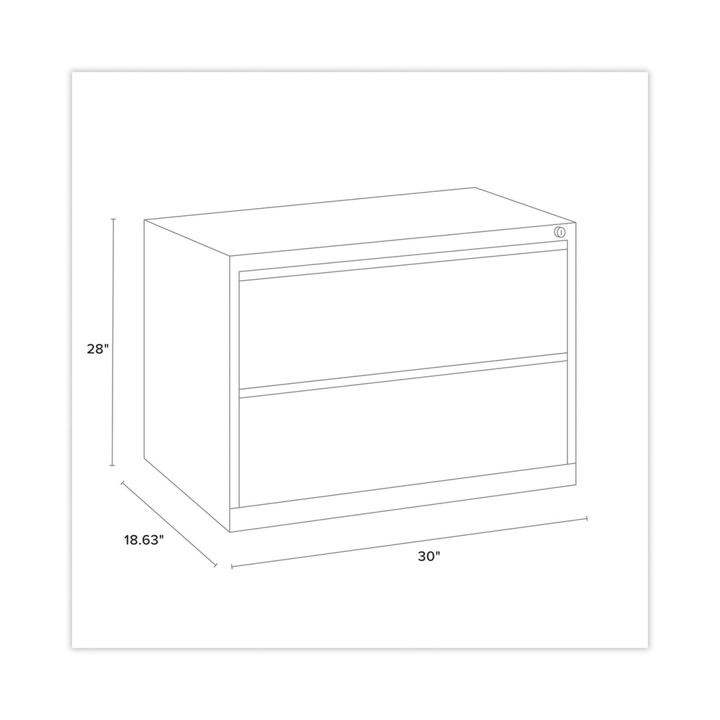 This commercial grade lateral filing cabinet is designed for heavy duty use, yet looks great in any office. Precision ball-bearing suspension allows for quiet use in your busy office environment. Fully assembled steel construction for durability. Non-porous surface is easy to clean and disinfect. Interlock system prevents tipping by only allowing one drawer open at a time. Core-removable lock comes standard. Unit includes hang rails and two adjustable leveling glides.