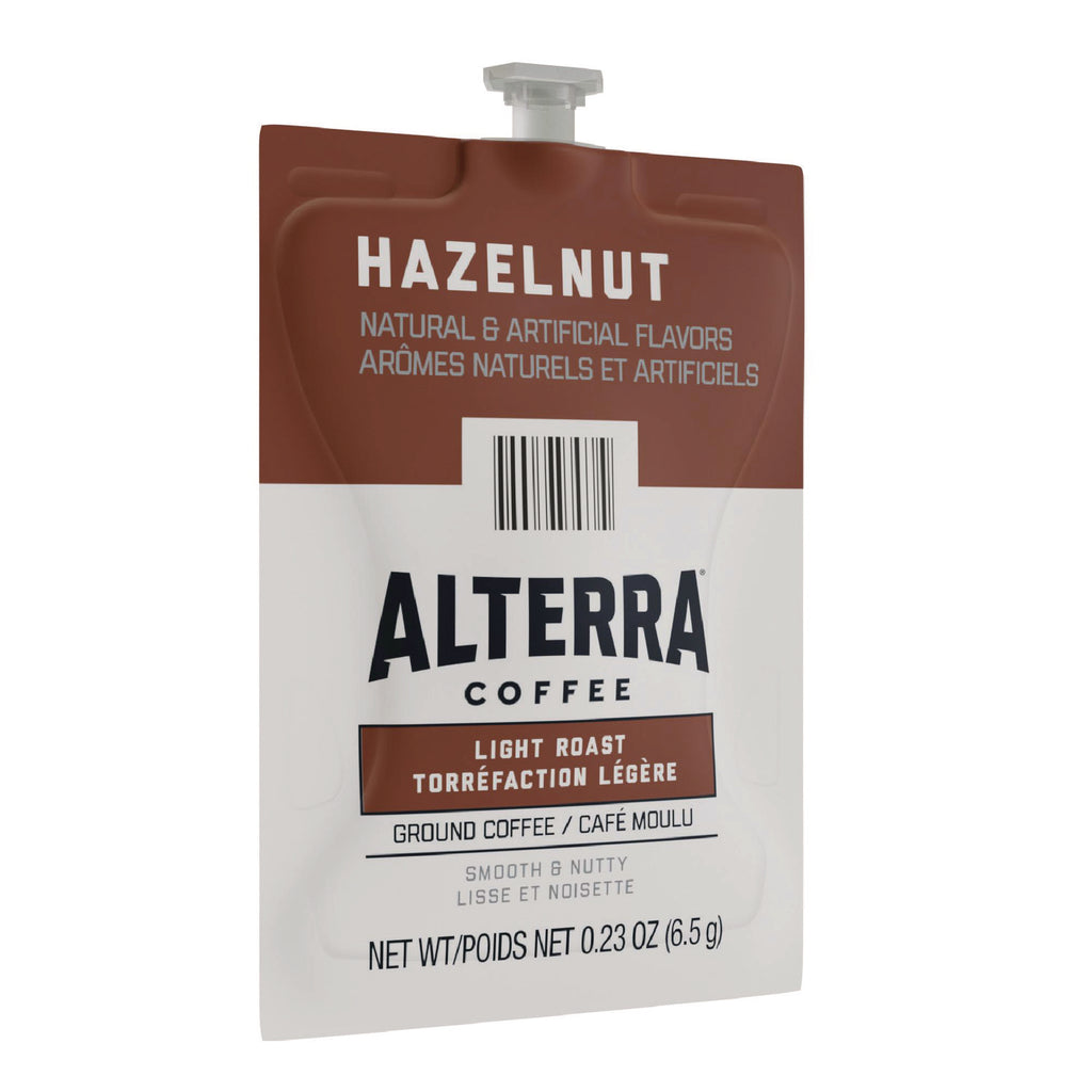 Enjoy a luxurious blend of coffee with light roasted beans and the continental flavor of hazelnuts. Our brewing process, where nothing touches the ingredients other than hot water, ensures your drink does not taste like previous brews. Compatible with FLAVIA® single-serve brewers. For single-serve sustainability, innovative pouches are 100 percent recyclable through Terracycle.