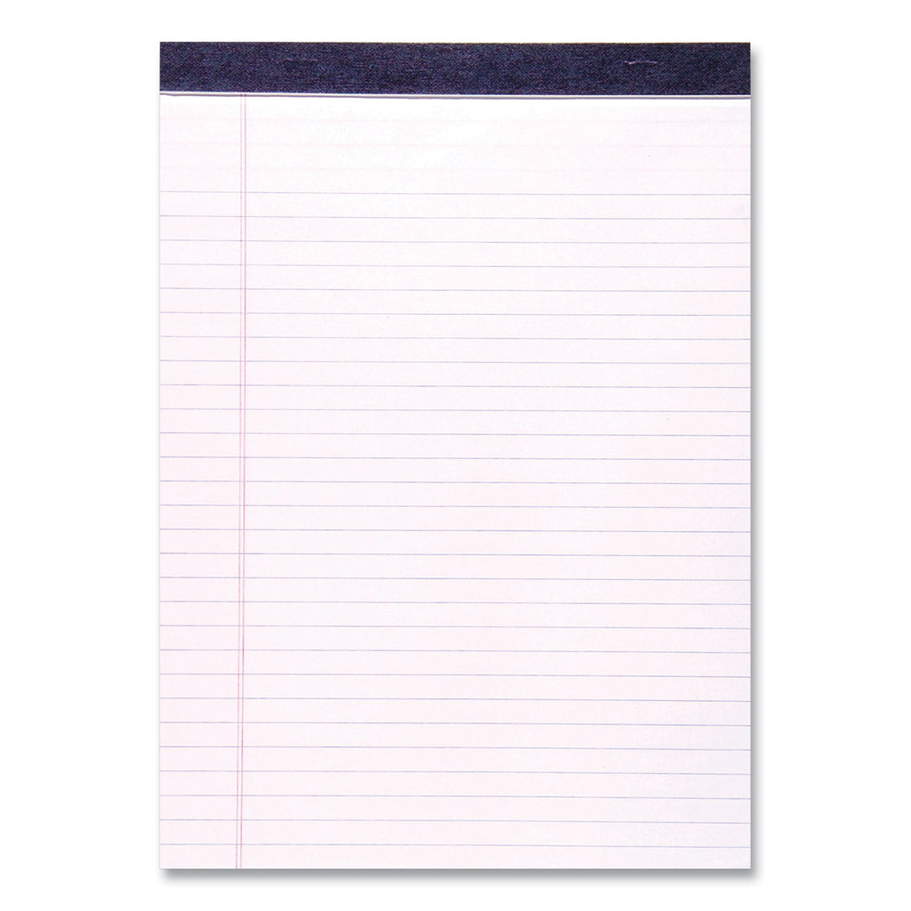 Legal paper pad. Smooth, 15 lb writing paper has legal ruled blue lines and double red margin lines. Sheets are micro-perforated for EZ removal. 34-pt chipboard back adds stability. Stapled and taped construction. Full sheet size is 8.5" x 11.75", and tear-out size is 8.5" x 11".