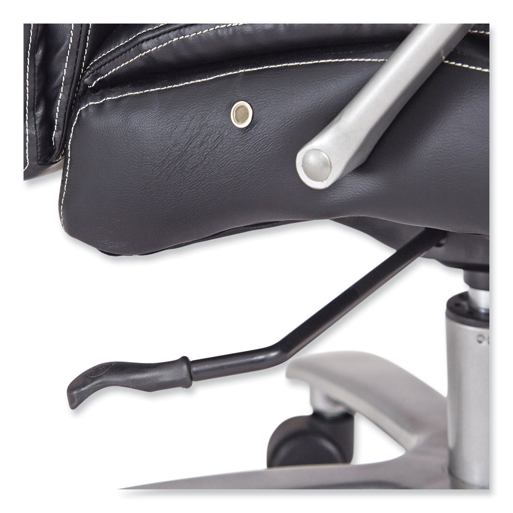 This chair provides a comfortable back support during the workday. Features a bonded leather seat and back, and chrome metal armrests with upholstered pads for a comfortable, ergonomic support. The heavy-duty height and tilt mechanisms allow the user to adjust the chair to their height and a 29" chrome metal base provides sturdy support during use. Mobile on 55 mm, heavy-duty casters, it can be easily moved across the workspace. Rated up to 400 lbs.