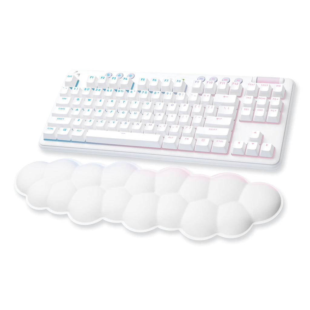 Part of the Aurora Collection, this wireless gaming Keyboard is a compact, comfy keyboard that delivers low-key vibes with high-key performance so you can express yourself and play your way. Float away with its dreamy white design and cloud-soft palm rest. A compact, tenkeyless layout, and adjustable height give that good game feeling, all-day long. Pack it up, place it anywhere, and play your best with a rechargeable 25-gaming-hour battery life and LIGHTSPEED wireless or Bluetooth® connectivity. Show off your play style with ethereal LIGHTSYNC RGB on the keyboard perimeter and under the keys along with out-of-the box Aurora Collection signature lighting. Customize your look with key caps and top plates in a variety of fun colors including Pink Dawn and Green Flash (sold separately).