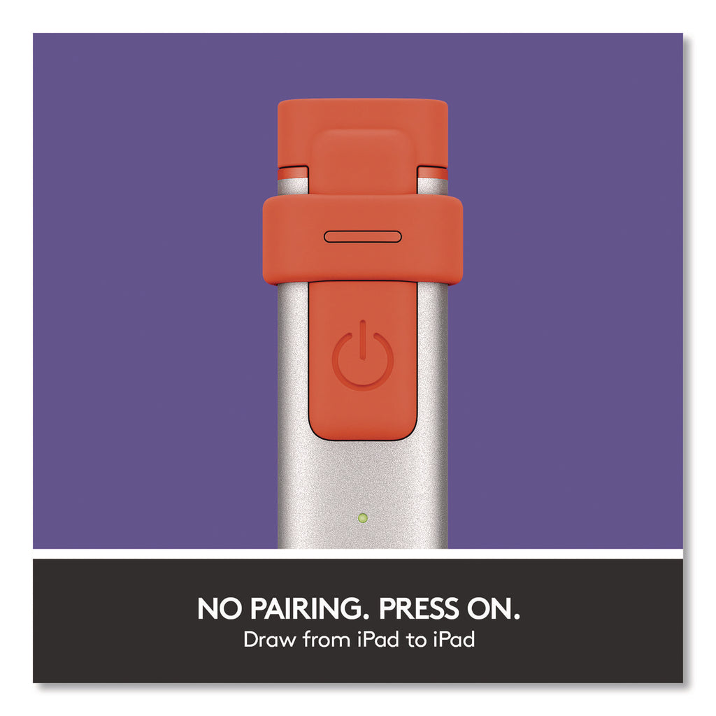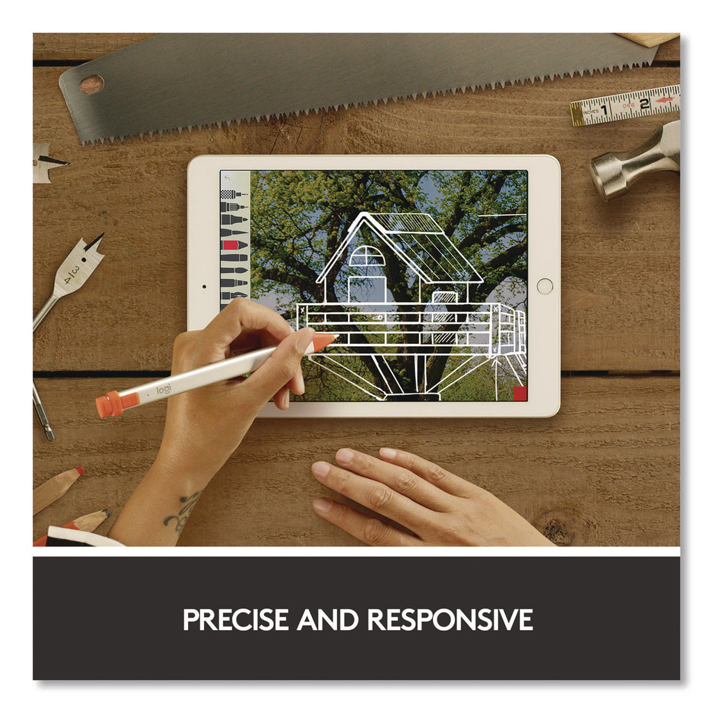 A versatile digital pencil for all iPads® (2018 releases and later) that lets you use hundreds of Apple Pencil® supported apps in dynamic new ways. Uses Apple Pencil® technology for an ultra-responsive, ultra-precise writing experience that feels as natural as pen and paper. Scribble automatically converts your handwriting to type. Just tilt for thicker or thinner lines—a smart tip adjusts line weight automatically. No pairing required; just turn on and draw. Throw it in a bag or stick it in your pocket—Logitech® Crayon is tough enough to go anywhere you do with 4 ft drop protection, secure tethered cap, and a flat shape to prevent it from rolling off desks or tables. Provides up to 7.5 hours of active writing time on a full charge. A quick two minutes of charging will give you 30 more minutes of active writing time. Rest your hand on the screen while you write—Logitech® Crayon automatically ignores stray touches so you can focus on the task at hand.