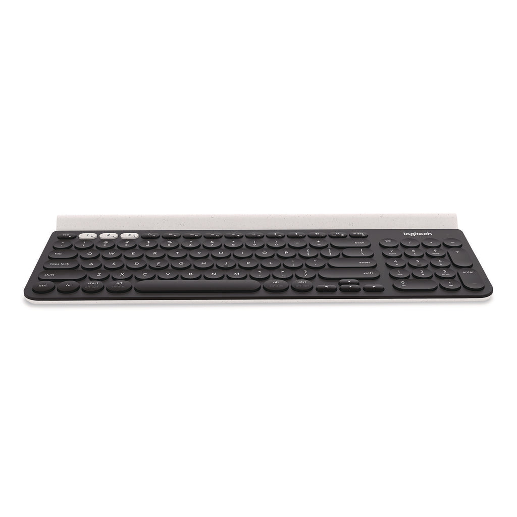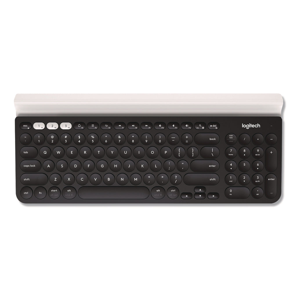 Compatible with a wide range of devices and operating systems, simplifying your office's tech situation. Its pre-installed batteries last up to 24 months for extended typing, allowing you to avoid wired use that limits your mobility. Full-size, easy-to-read concave keys make typing quick and comfortable, and a built-in tray sits in front of the keyboard to support phones and tablets in a comfortable upright position for convenient use.