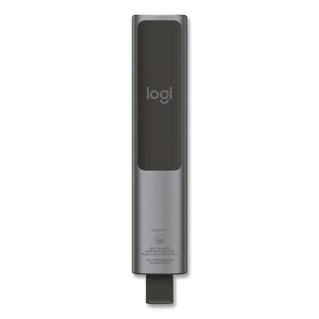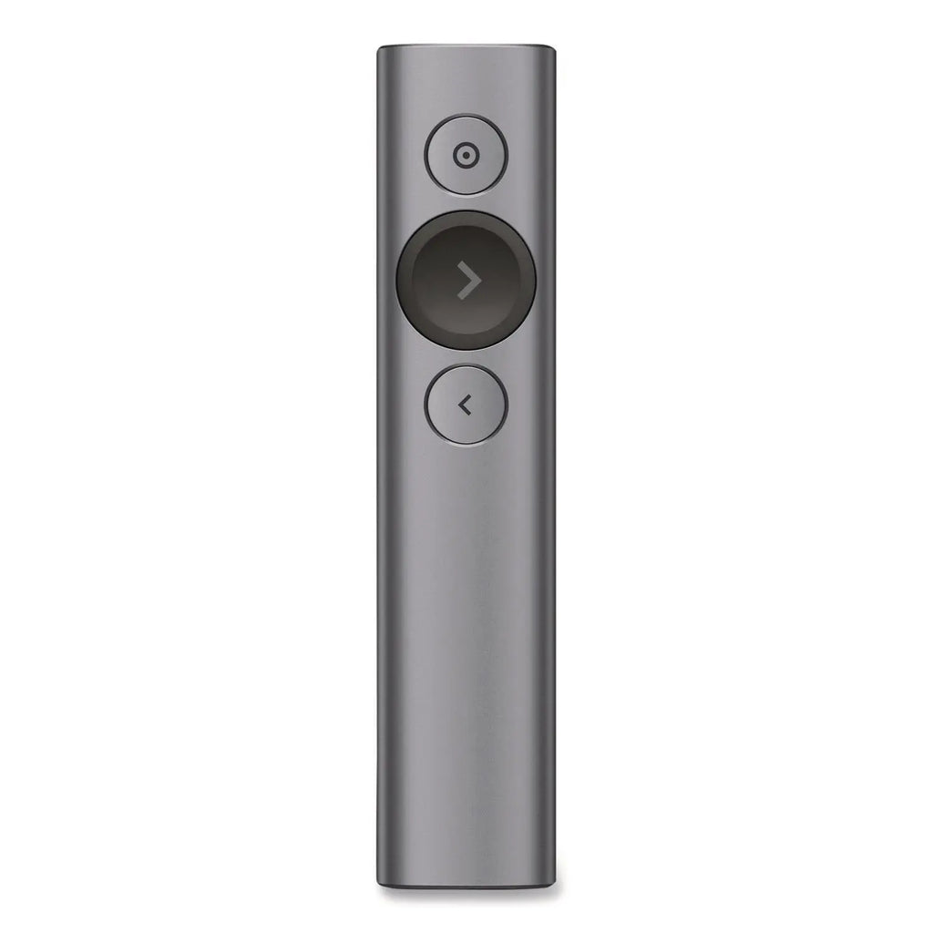 Control your computer from up to 100 ft away with this small, convenient presentation remote. Smart time-management functionality notifies you with vibrations when it's time to conclude your presentation, and its associated app lets you customize settings. This Logitech® presentation remote is compatible with both Windows® and Mac® operating systems and connects via USB or Bluetooth® for wireless control.