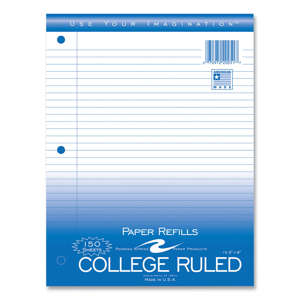 Looseleaf filler paper. Smooth, 15#, white writing paper. Each pack contains sheets with a red margin line. The paper is 3-hole punched. Polywrapped with a printed top sheet.