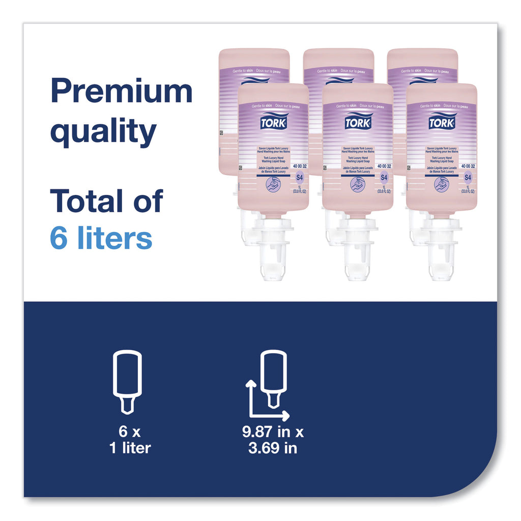 Features moisturizing ingredients and a pleasant fragrance. With a pearlescent sheen and a luxurious feel, this formula is gentle to skin and suitable for frequent use. This dermatologically tested formula is gentle to skin and suitable for frequent use Suitable for Tork Skincare dispensers (S4). Easy to use and provide good hand hygiene to all users