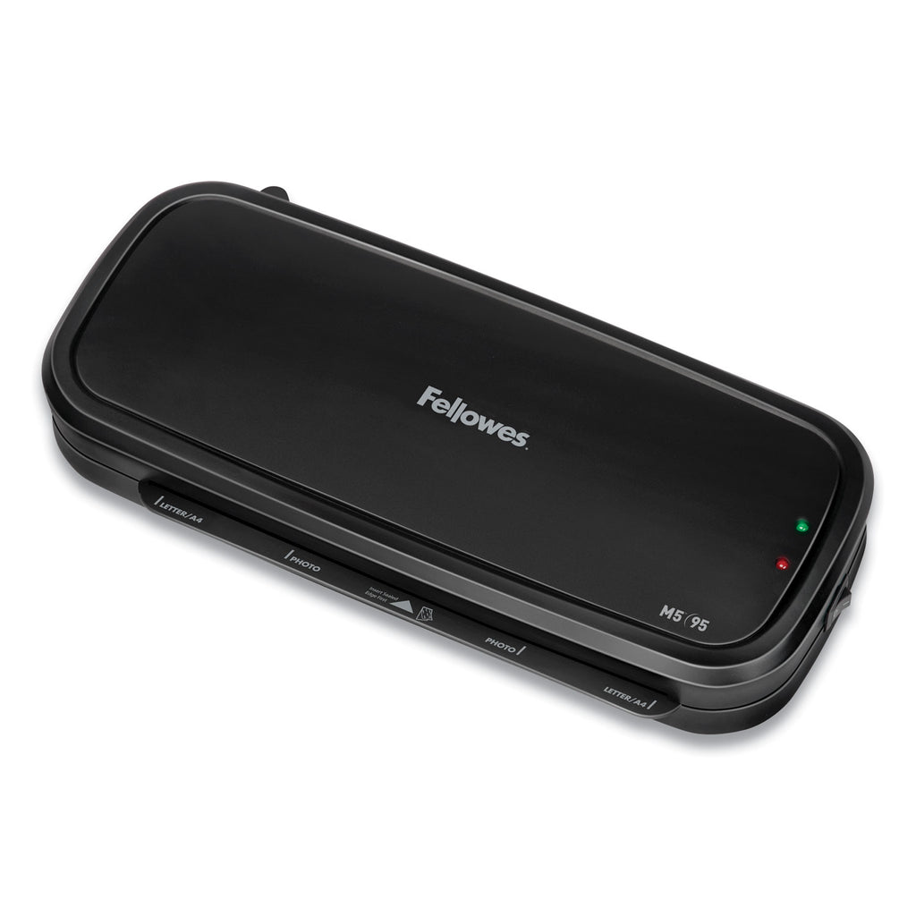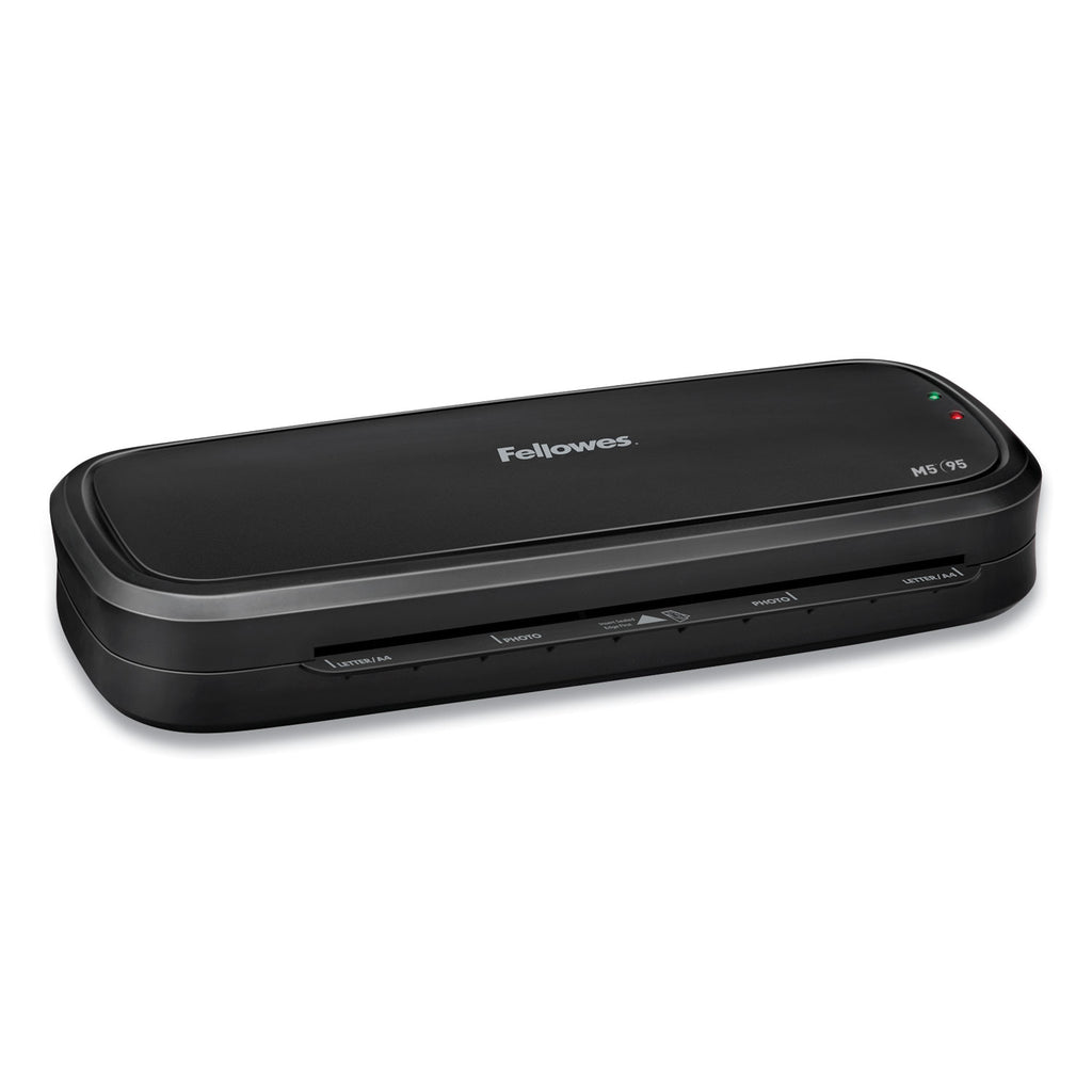 Designed for light use in the home or home office, the laminator accommodates 9-1/2 inch wide documents and features advanced temperature control for consistent results. Offers a heat setting for 3-mil and 5-mil hot pouches. Heats up in 4 minutes. Release lever disengages pouch for re-centering or removal. Includes laminating starter kit.