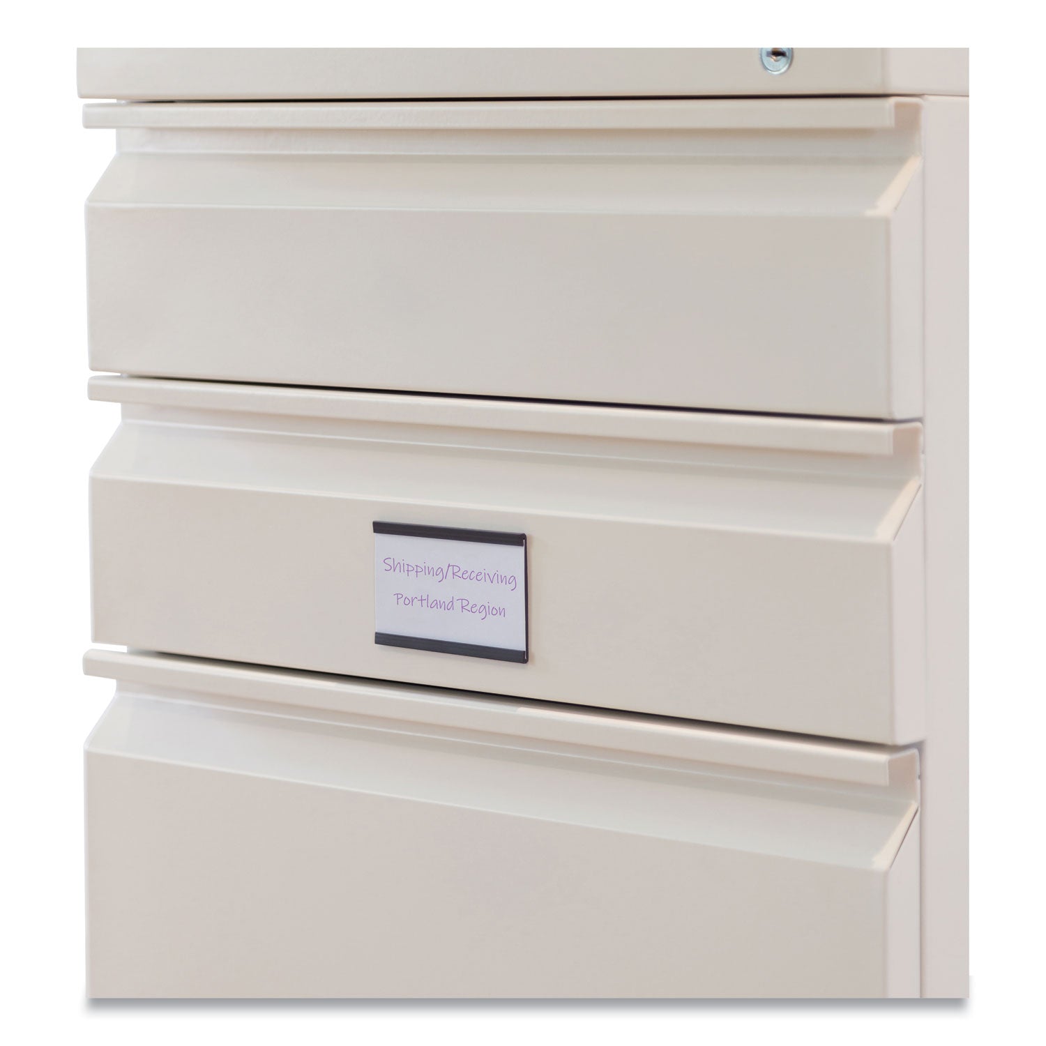- Strong magnetic material label with side slots to hold cardstock labels.