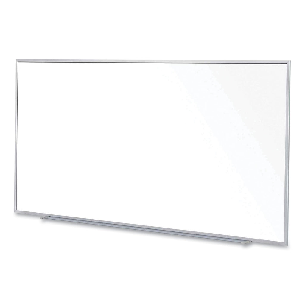 Offering a superior writing surface and unsurpassed durability, this magnetic whiteboard is made with customers in mind. The 28-gauge porcelain-on-steel surface is mounted to a 0.38" backing for added strength. The durable porcelain enameled surface keeps the dry erase board from scratching or denting, even when installed in high-traffic schools and offices.