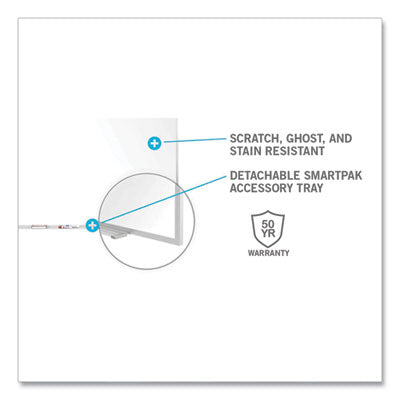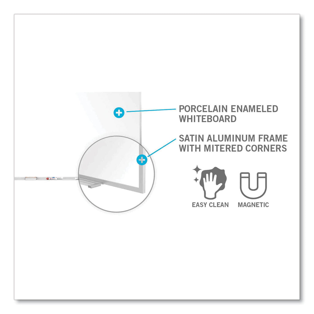Offering a superior writing surface and unsurpassed durability, this magnetic whiteboard is made with customers in mind. The 28-gauge porcelain-on-steel surface is mounted to a 0.38" backing for added strength. The durable porcelain enameled surface keeps the dry erase board from scratching or denting, even when installed in high-traffic schools and offices.
