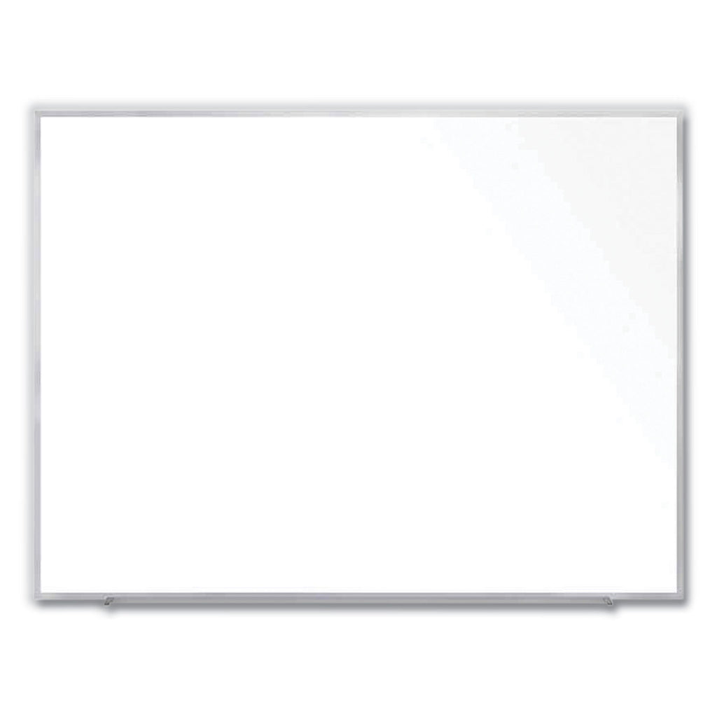 Offering a superior writing surface and unsurpassed durability, this magnetic whiteboard is made with customers in mind. The 28-gauge porcelain-on-steel surface is mounted to a 0.38" backing for added strength. The durable porcelain enameled surface keeps the dry erase board from scratching or denting, even when installed in high-traffic schools and offices.