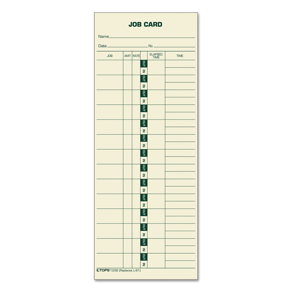 Equivalent to time clock manufacturer's time cards. Boxes to keep track of job, amount, rate, elapsed time and total time worked. 14 lines to track an employee's time worked at different jobs.