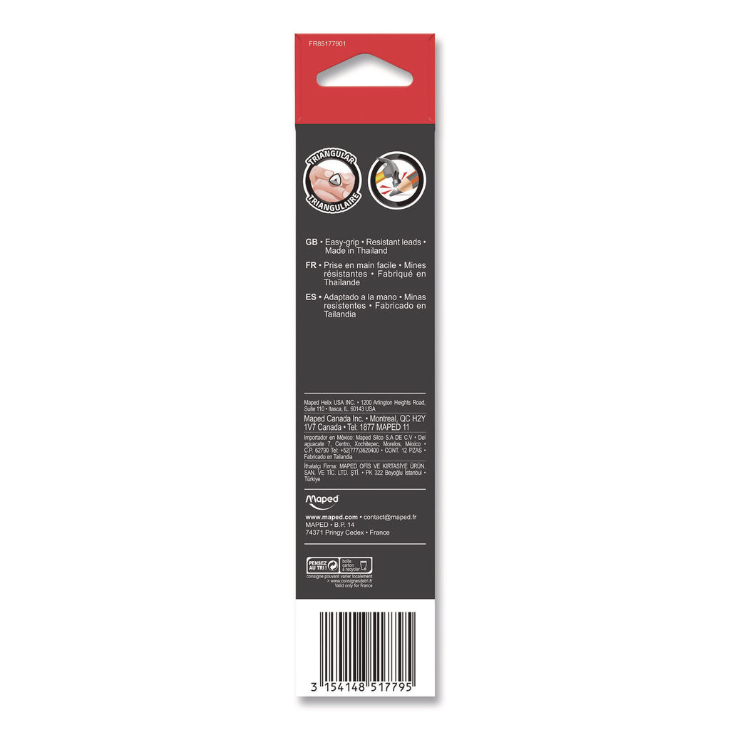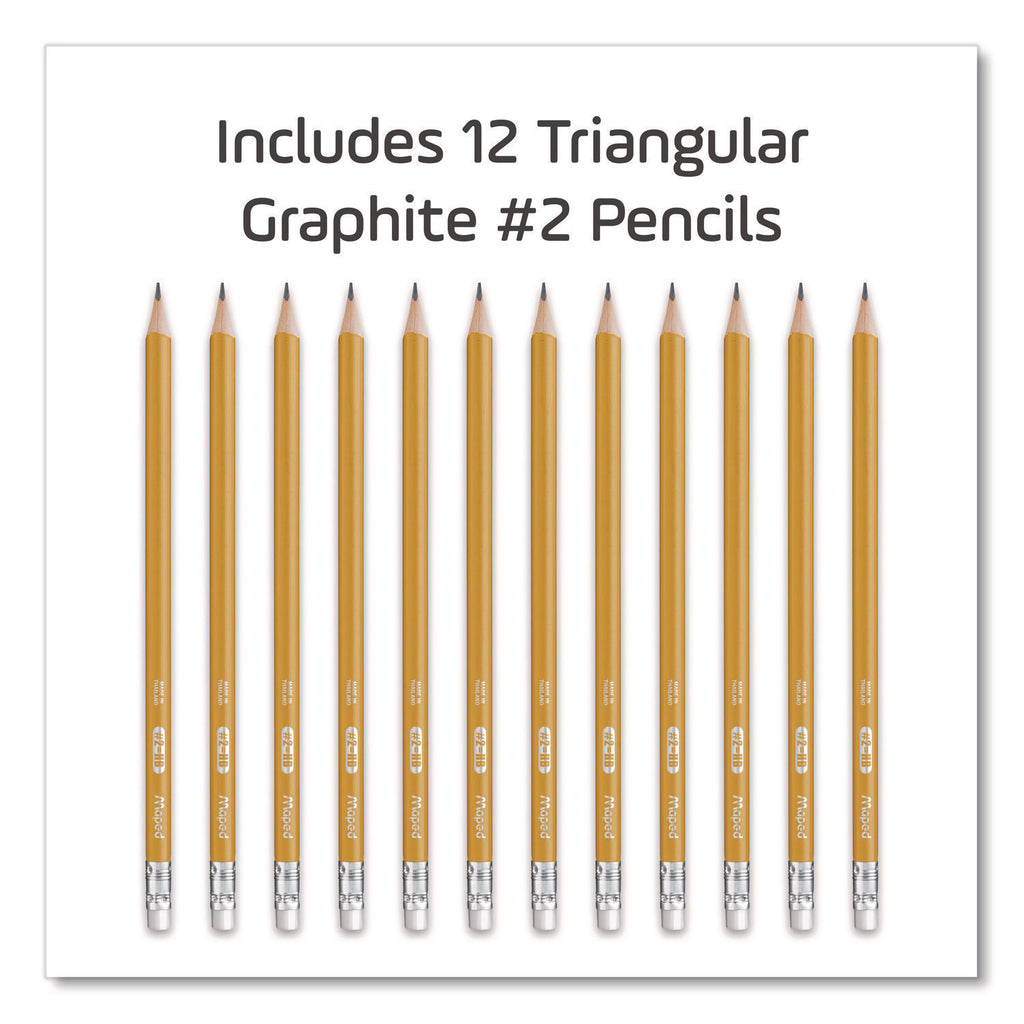 Write more comfortably with this ergonomic, pre-sharpened #2 pencil! Unlike a standard hexagonal pencil, the triangular body of the Maped Essentials Pre-sharpened Pencils naturally index your fingers in the correct spots for a more comfortable hold, and they will not roll off of a desk or table! High quality graphite is break resistant and fully bonded to the wood casing so it sharpens and writes cleanly with no splinters or separated lead. Upgraded matte finish is easier to grip and will not slip during use, and fitted with a premium latex-, PVC- and phthalate-free eraser that cleanly removes graphite without smearing or tearing. Easy to sharpen in any standard pencil sharpener!