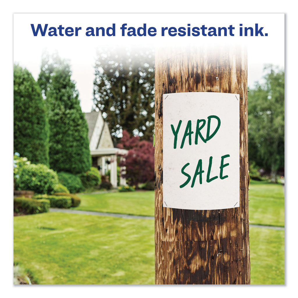 - Bold, quick-drying, water- and rub-resistant permanent ink.