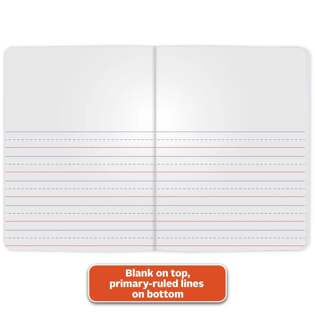 Journal is appropriate for grades K-2. It contains double-sided, primary-ruled sheets. Double-sided primary ruling is printed with solid and dotted lines. Ideal for beginning students who want to improve their handwriting. Top half of each page is blank for illustrating stories. Blue marble cover includes manuscript alphabet for reference. Sewn binding keeps pages in place and lays flat on any surface.
