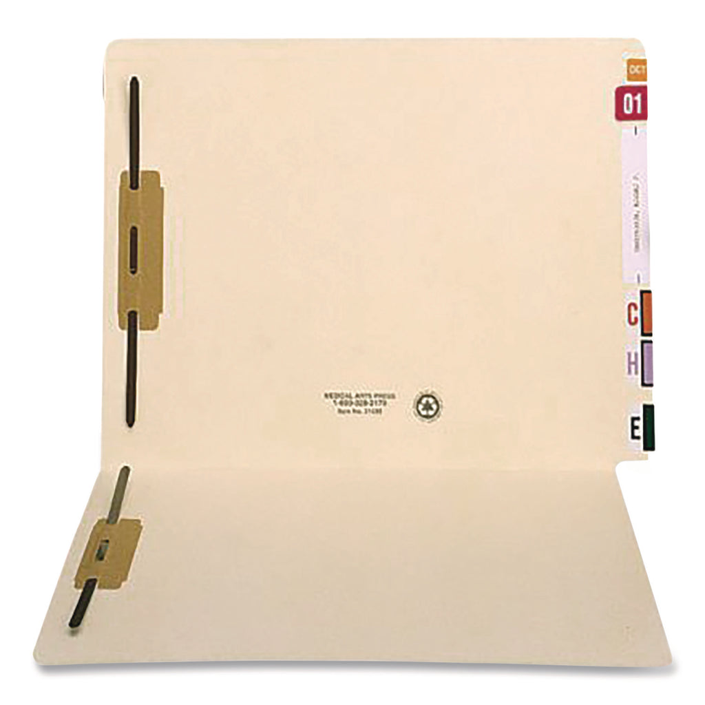 Extended end tabs with embossed score lines help ensure even labeling, and embedded fasteners allow you to subdivide your documents as needed. Heavy-duty manila stock provides the strength required to stand up to the wear and tear that frequently accessed files are exposed to. Spine is scored for expansion.